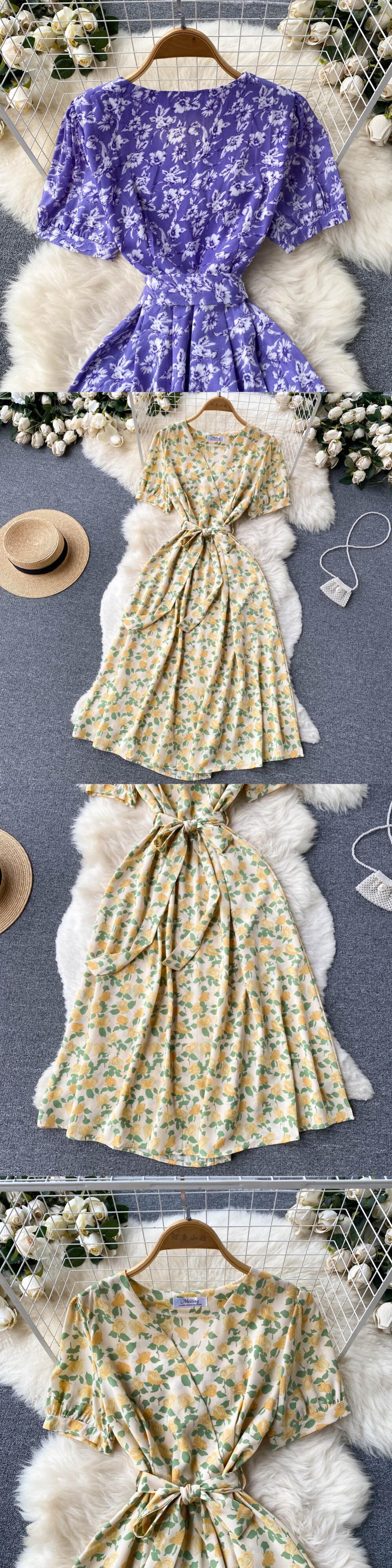 女性のドレス2022年夏セクシーなVネックフローラルプリント自由奔放に生きるビーチドレスフリル半袖Aラインミディドレスラップサンドレスローブ ショート ハーフスリーブ サマー 夏物 花柄 Abe2589746636