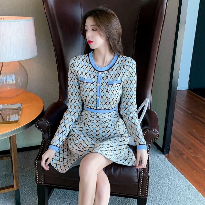 女性のためのエレガントなOネックオフィスレディAラインスリムVestidos秋冬ドレス ロング 長袖 オータム 秋物 ウィンター 冬物 会社 学校 通勤や通学にも Rhc41092393439