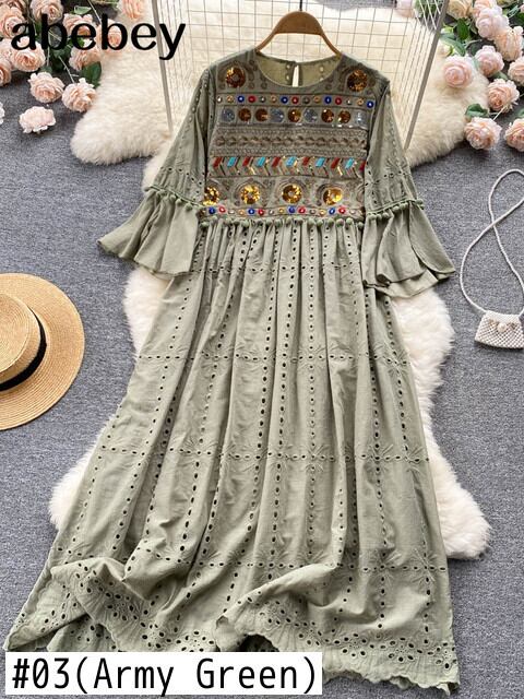 2022年女性オネックテルロングパーティードレス夏の七分袖レースマキシドレスレディパッチワークビーチドレス サマー 夏物 Abe14596610989