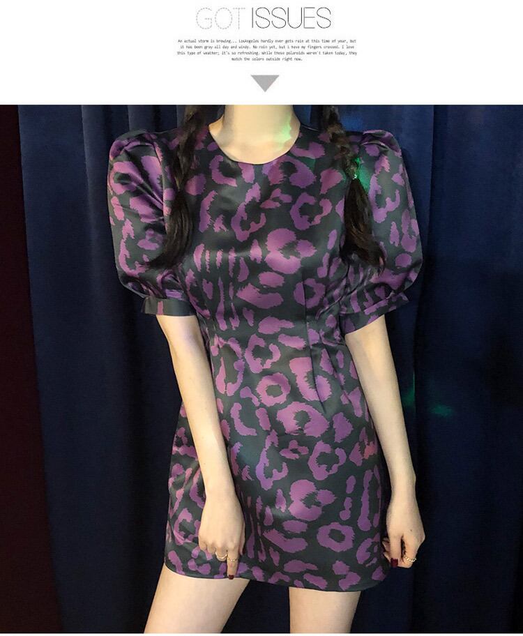 2021パターンバージョン半袖スリムラウンドネックコレクトウエストパープルカラーヒョウワンピーススカート ショート ハーフスリーブ Oネック Rhc6131423577