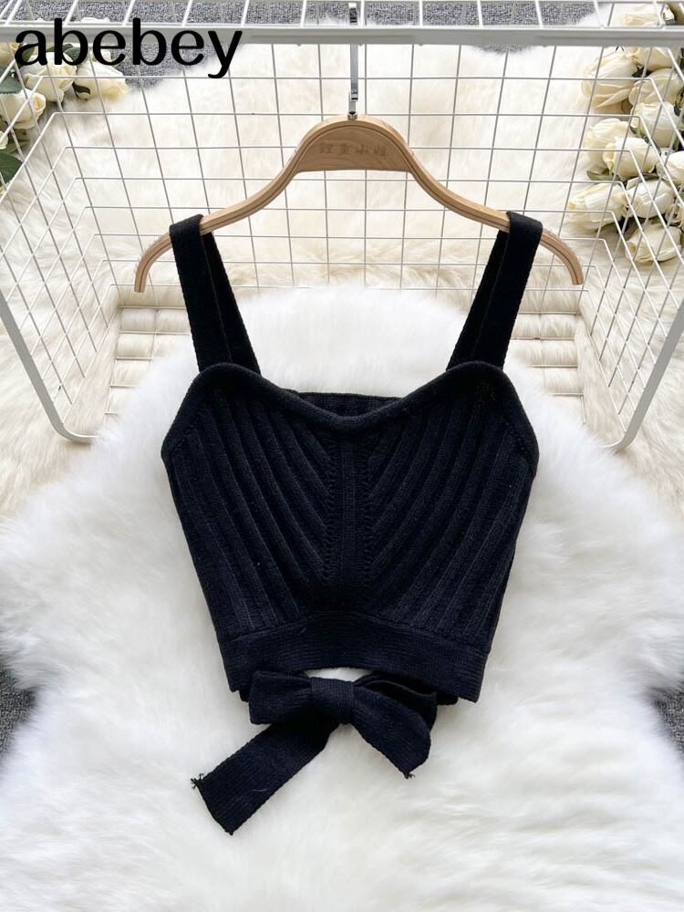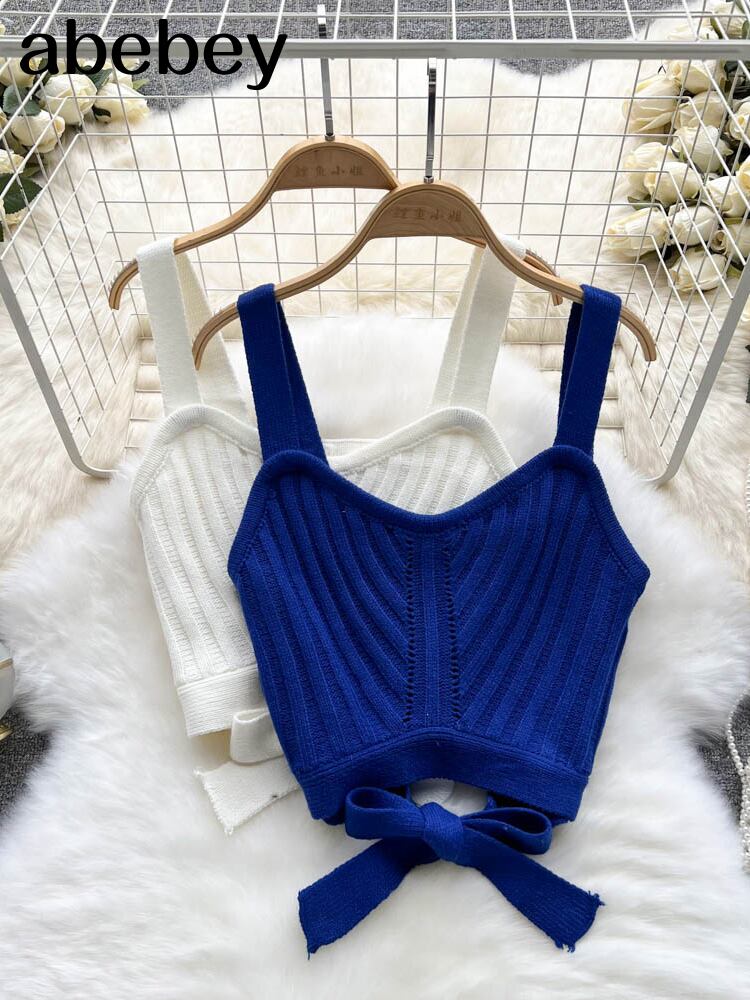 2022ストラップニットクロップトップ女性中空アウト夏夏ノースリーブ背中の開いたセクシーなY2kタンクトップ サマー 夏物 Abe22624855382