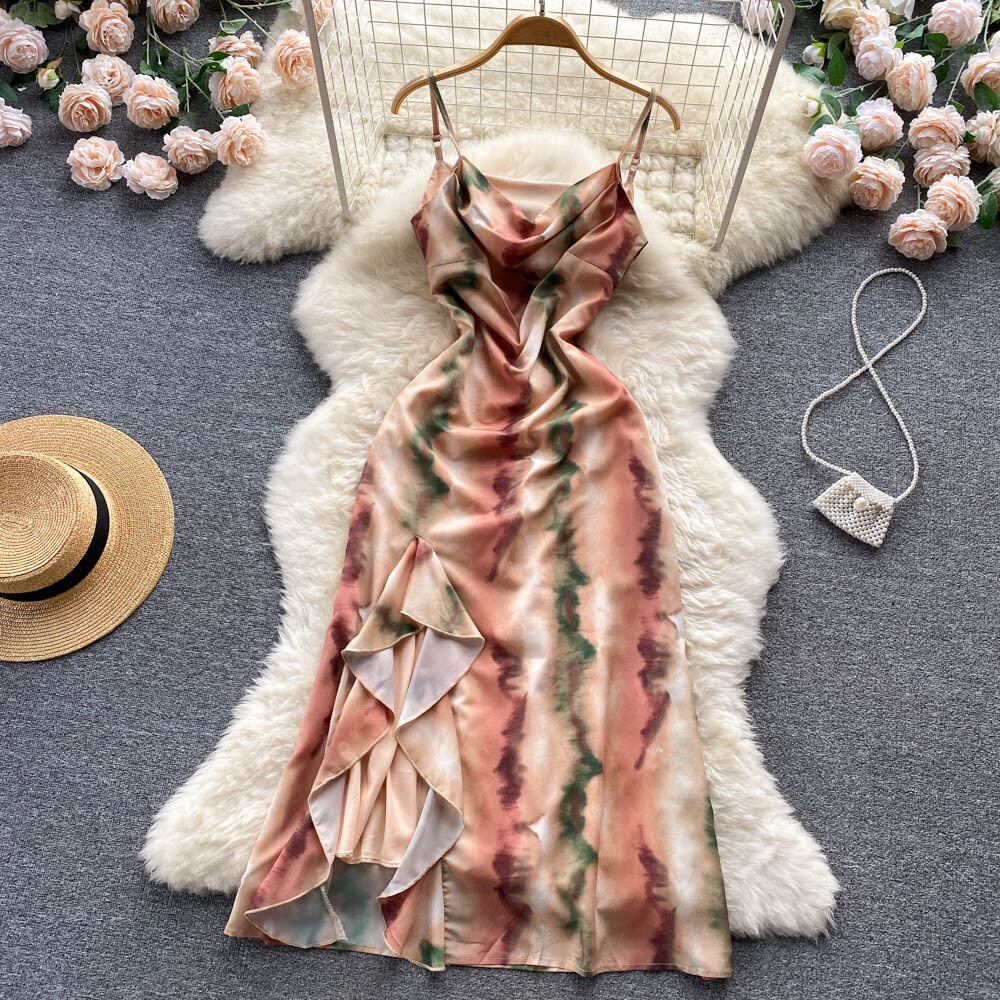 2022年夏のレディースドレスVネック非対称フリルウエストスタープミニバックレスドレスタイド ラッフル サマー 夏物 Abe62582407739