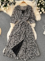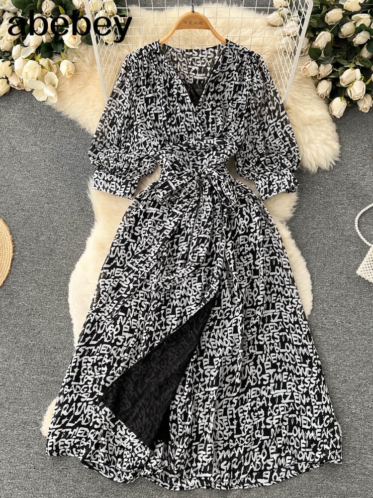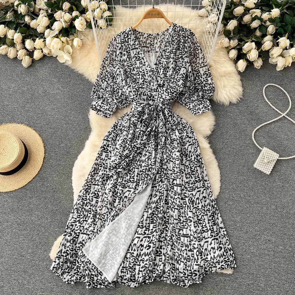 緑の女性のサマードレス2022半袖ソリッドサッシVネックミディAラインドレス ショート ハーフスリーブ 夏物 ソリッドカラー グリーン Abe29519866401