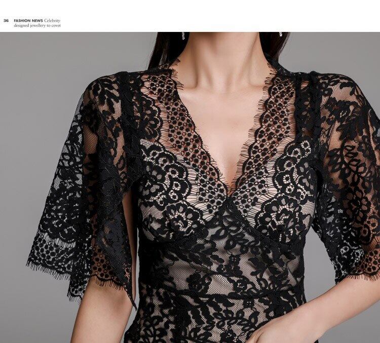 2020サマーパーティードレスレディースレースVネックフレアスリーブスリムシースドレスボディコンマルOLオフィスドレス 夏物 会社 学校 通勤や通学にも Rhc39606807523
