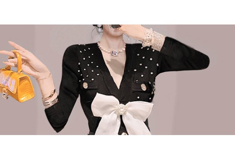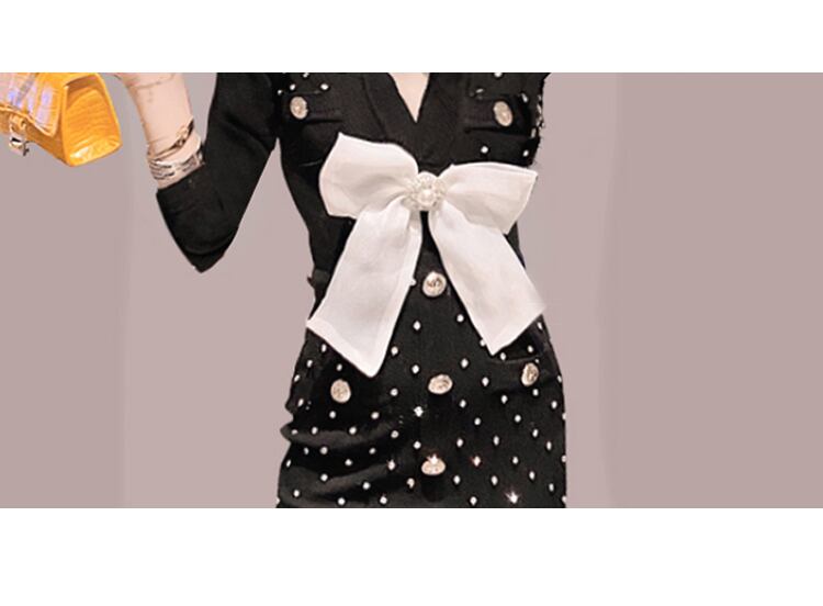 女性セクシーなVネックボディコンミニショートドレスクリスタル&ボタンの装飾ボウシースカーブフィットネスドレスローブ リボン Rhc93495078054