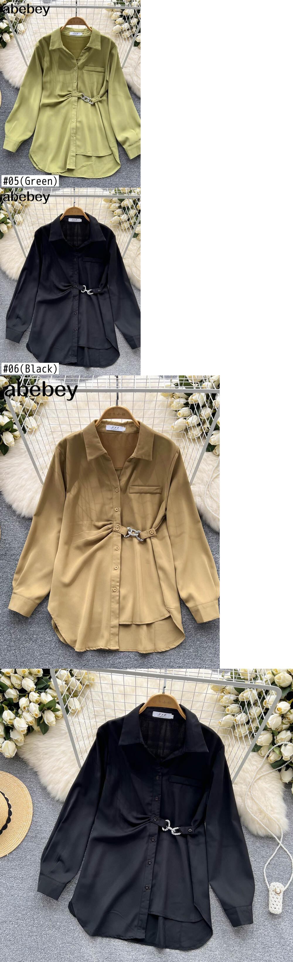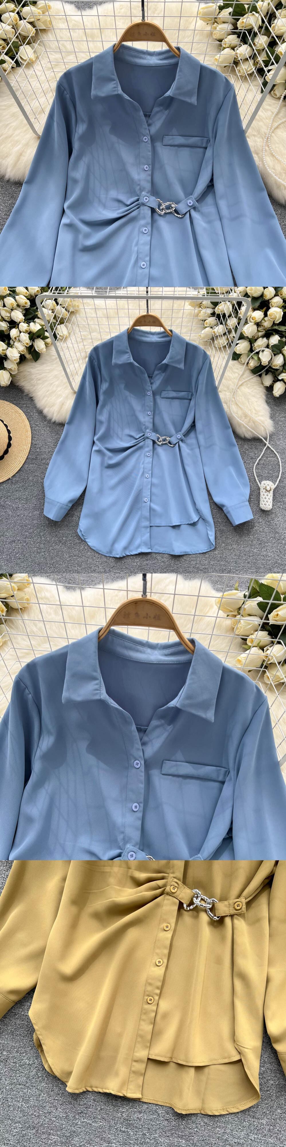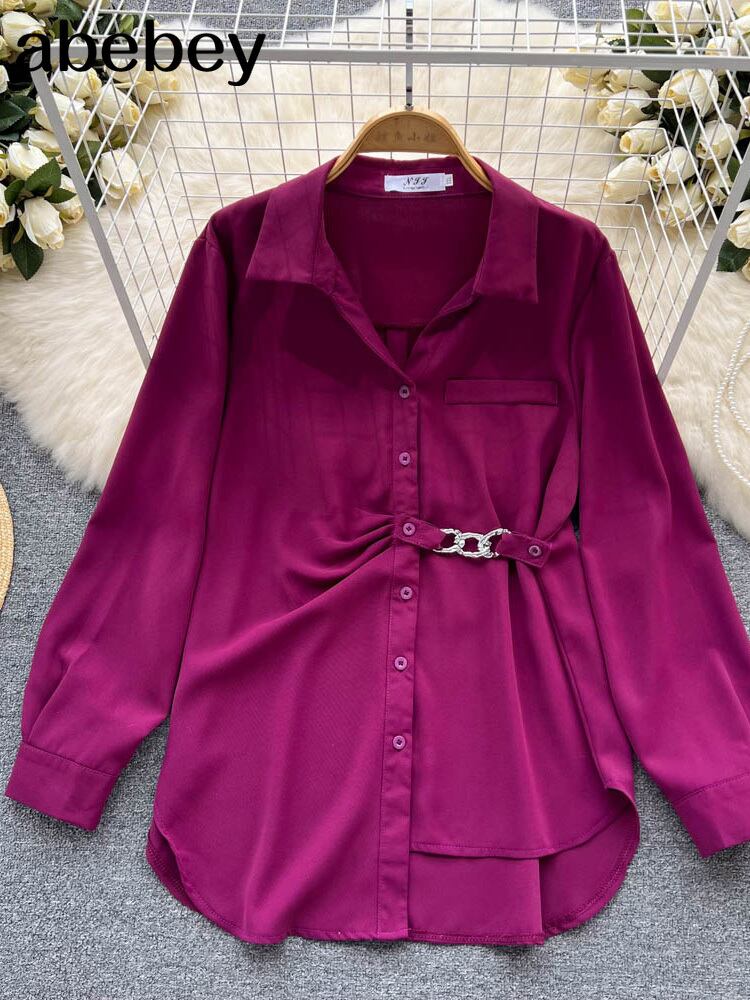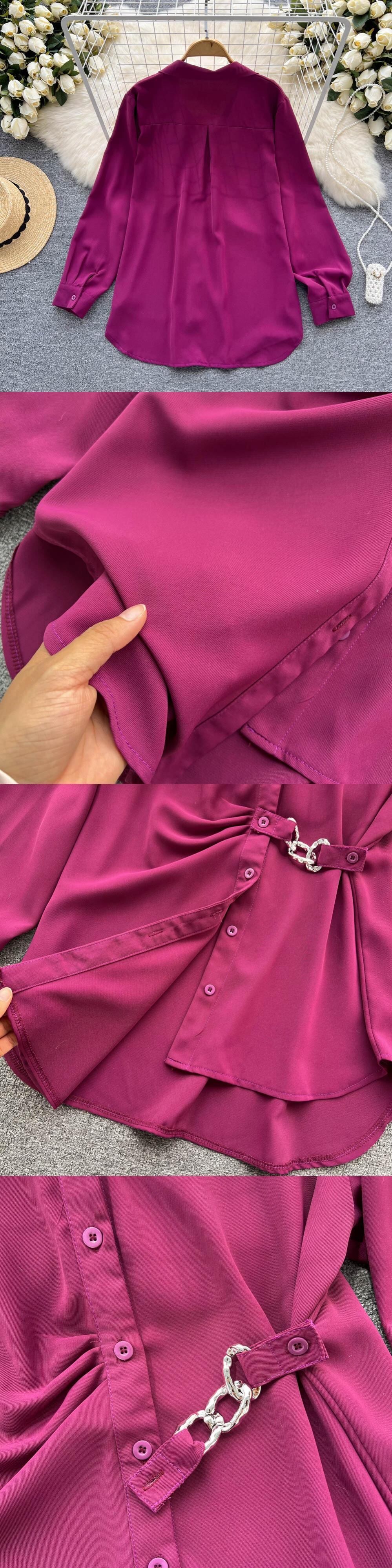 女性のゆるい非対称チェーンブラウス長袖ボタンアップシャツシックなトップス ロング Abe99016185352