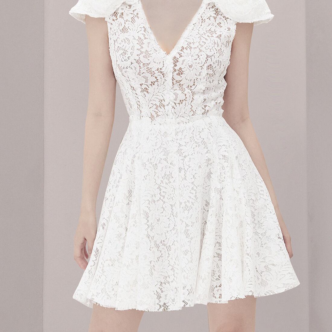 2020夏の白いレースのドレス女性の滑走路パフスリーブ中空アウトラインミニドレスセクシーなVネックプラティドレス ホワイト サマー 夏物 Aライン Rhc31682051874