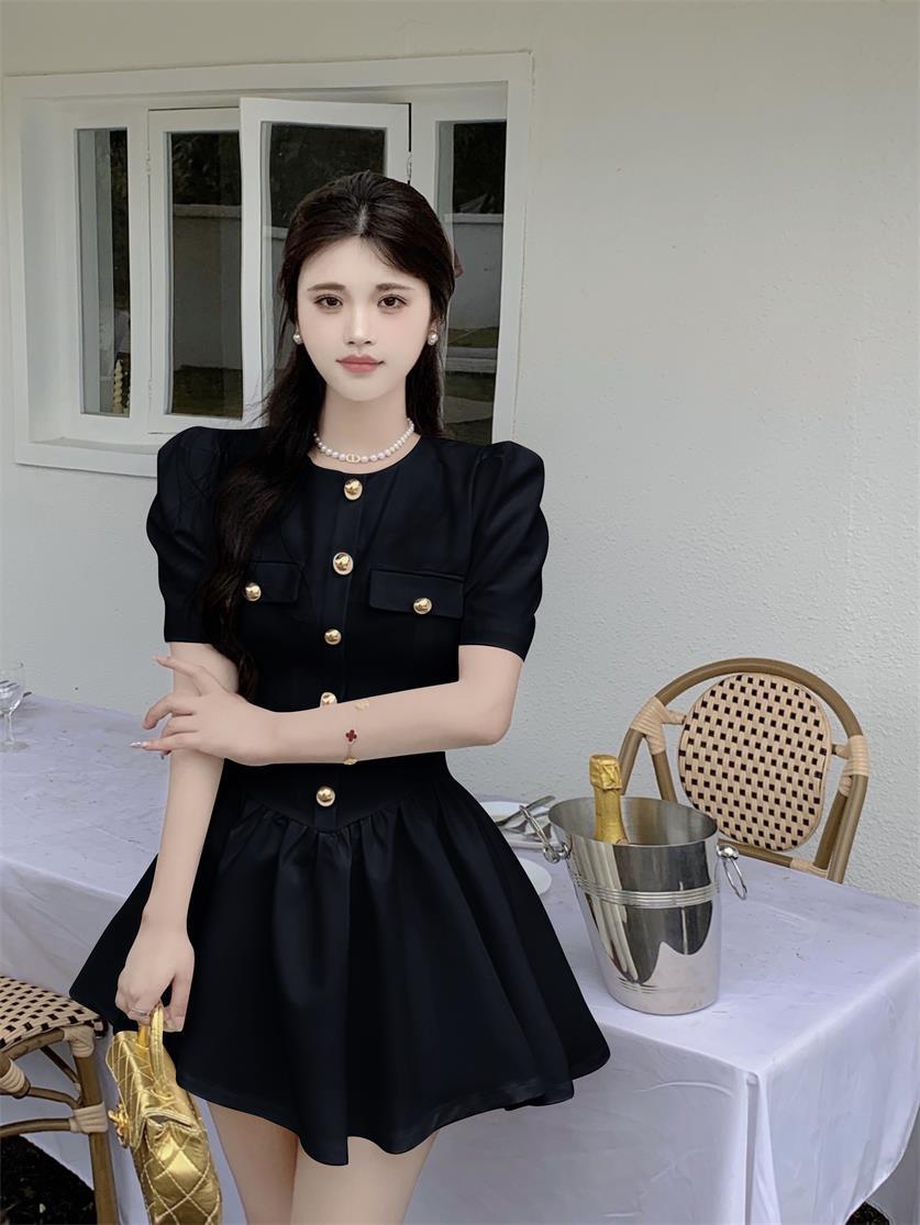 ランウェイラグジュアリーシックホワイトミニドレスレディースゴールデンボタンパフスリーブフリルティーブレイクドレス ラッフル Rhc64431775635