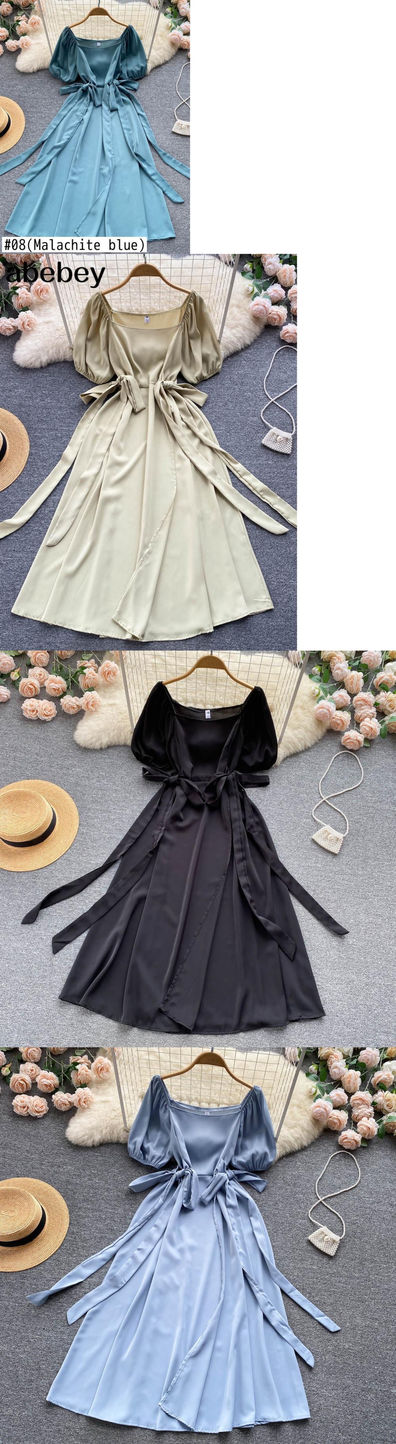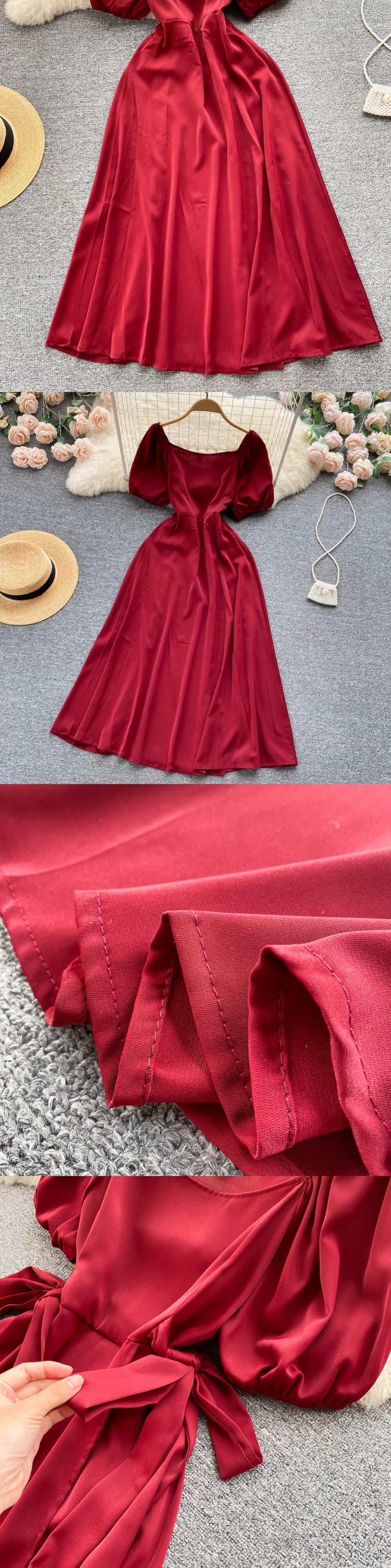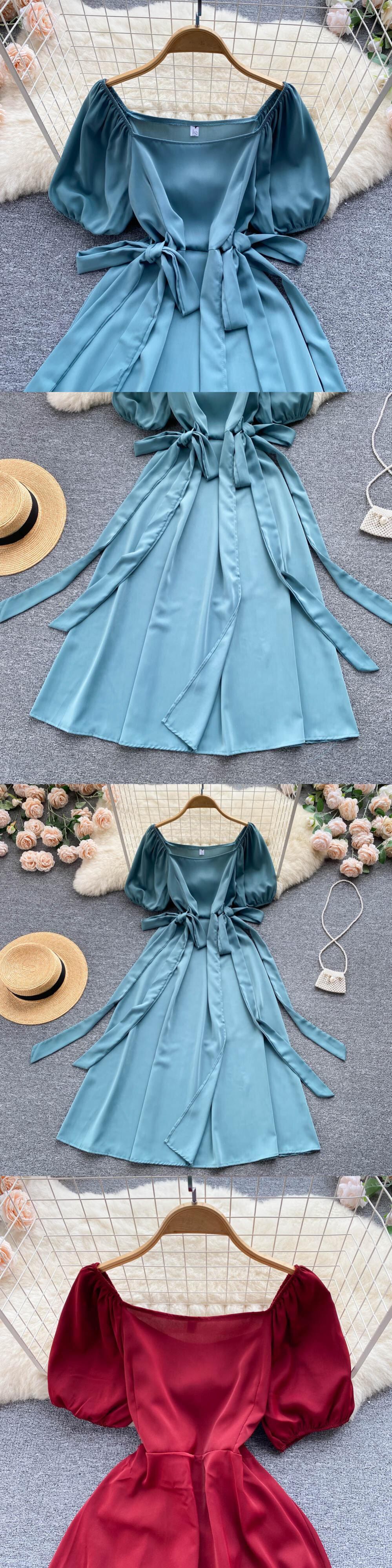 スクエアカラープリーツドレスレディース2022年春夏イエロー/ブルー/レッドウエストバンデージパーティーVestidosRobe スプリング 春物 サマー 夏物 スクウェア Abe24724734609