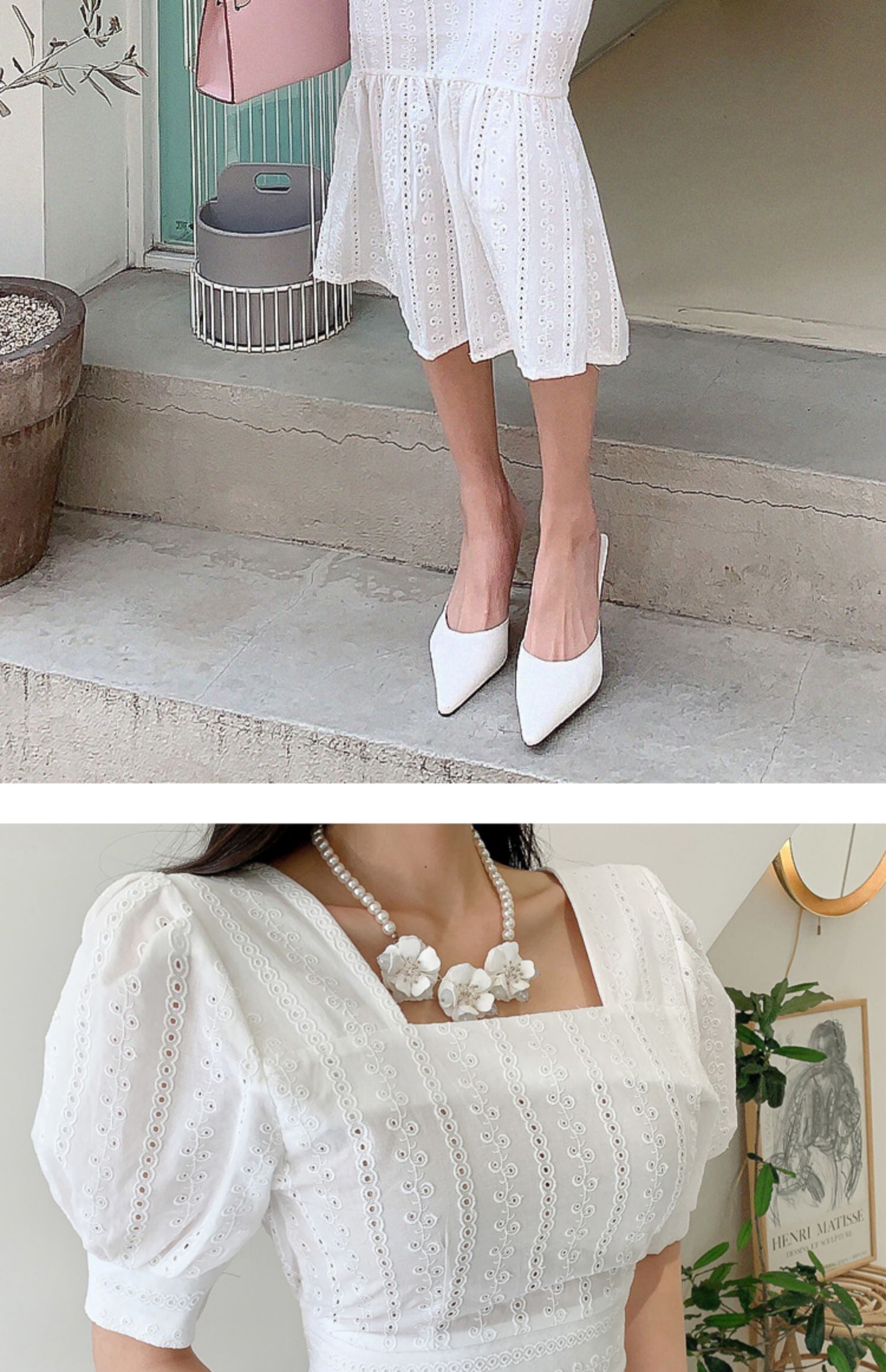 夏の女性中空アウトスクエアネックセクシーパフスリーブクロップトップ+ウエストマーメイドエンパイアフリル裾ロングスカートセット ラッフル サマー 夏物 スクウェア Rhc63669441182