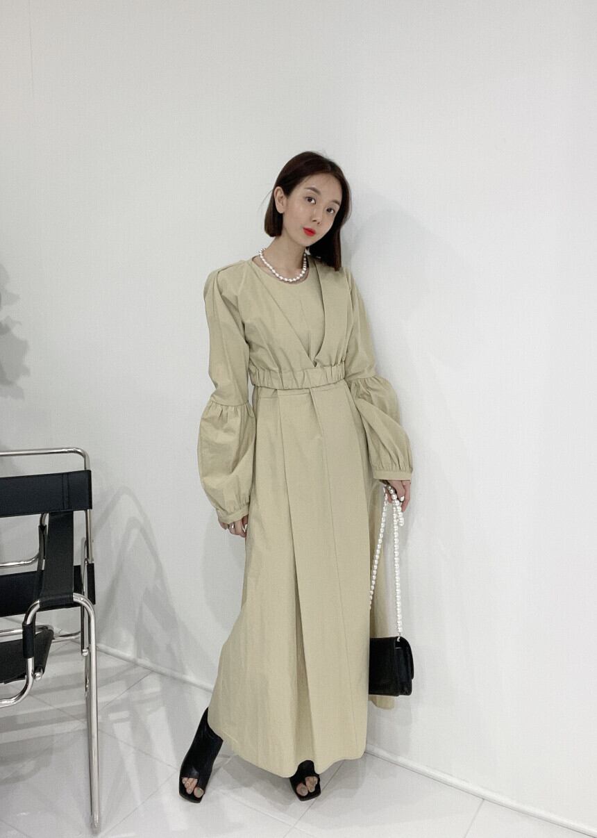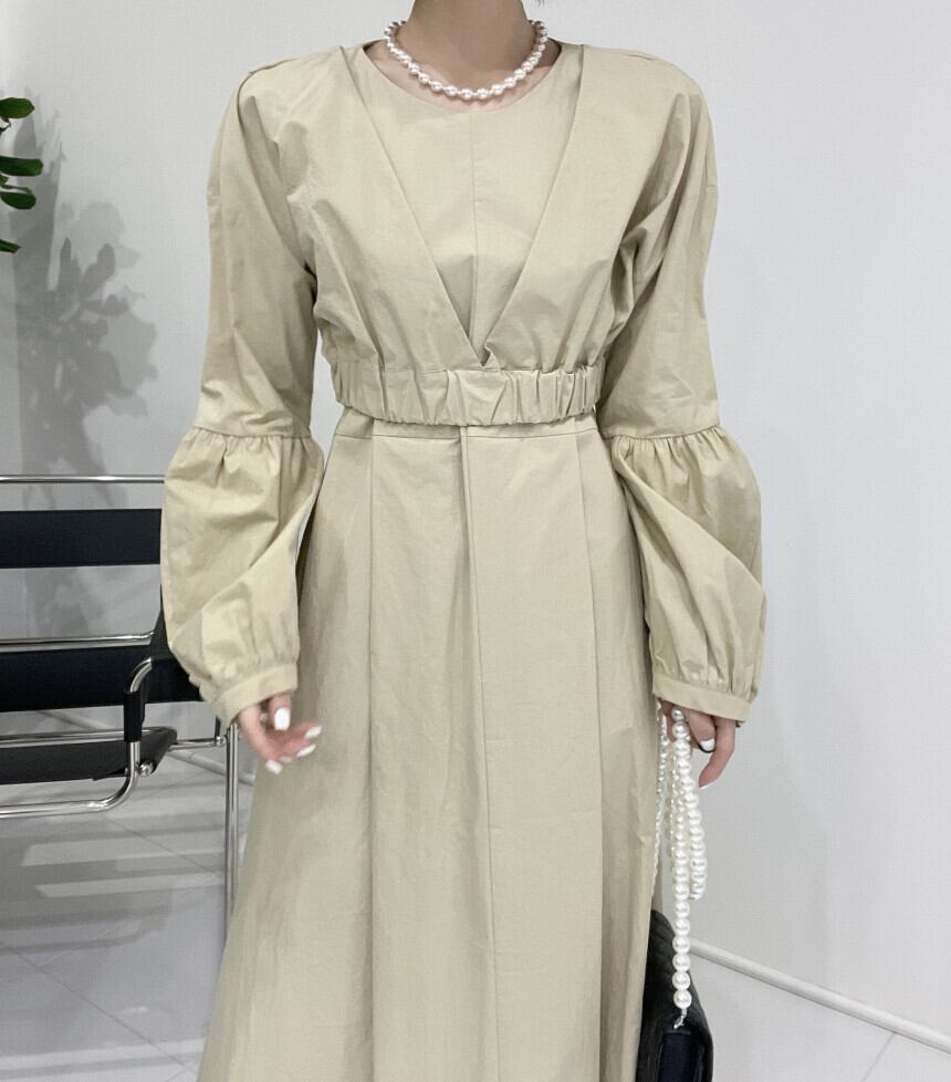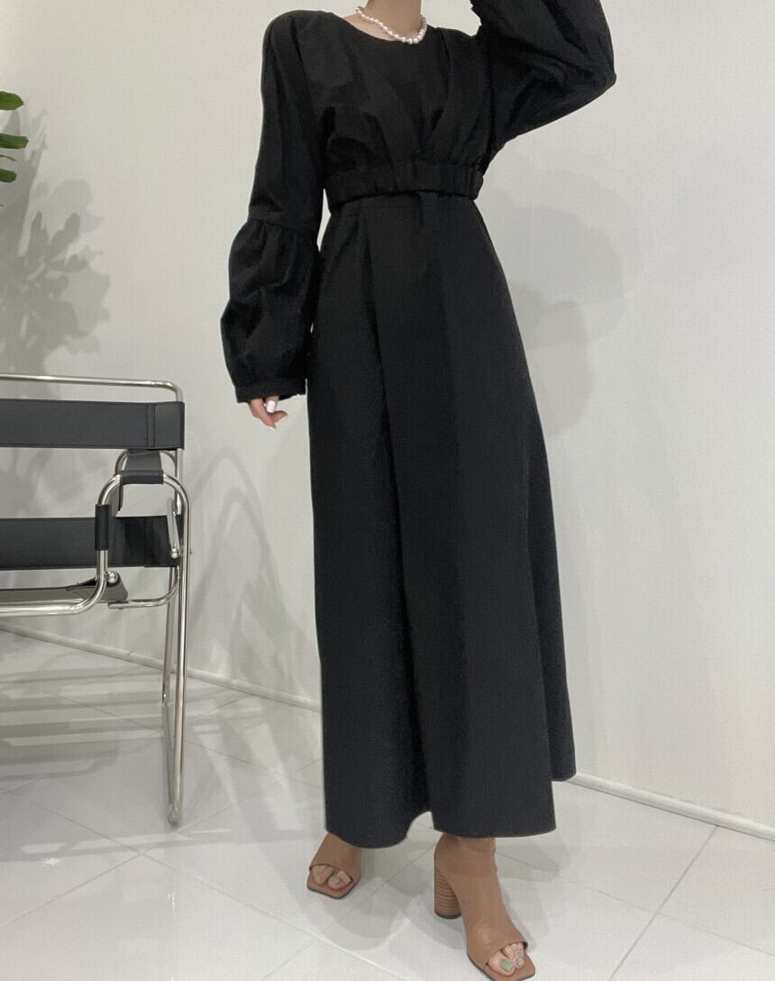 パーティーサンドレス秋の女性Oネックロングパフスリーブ伸縮性ウエストVestidosレースアップオフィスプリーツドレス エラスティック オータム 秋物 会社 学校 通勤や通学にも Rhc1727155321