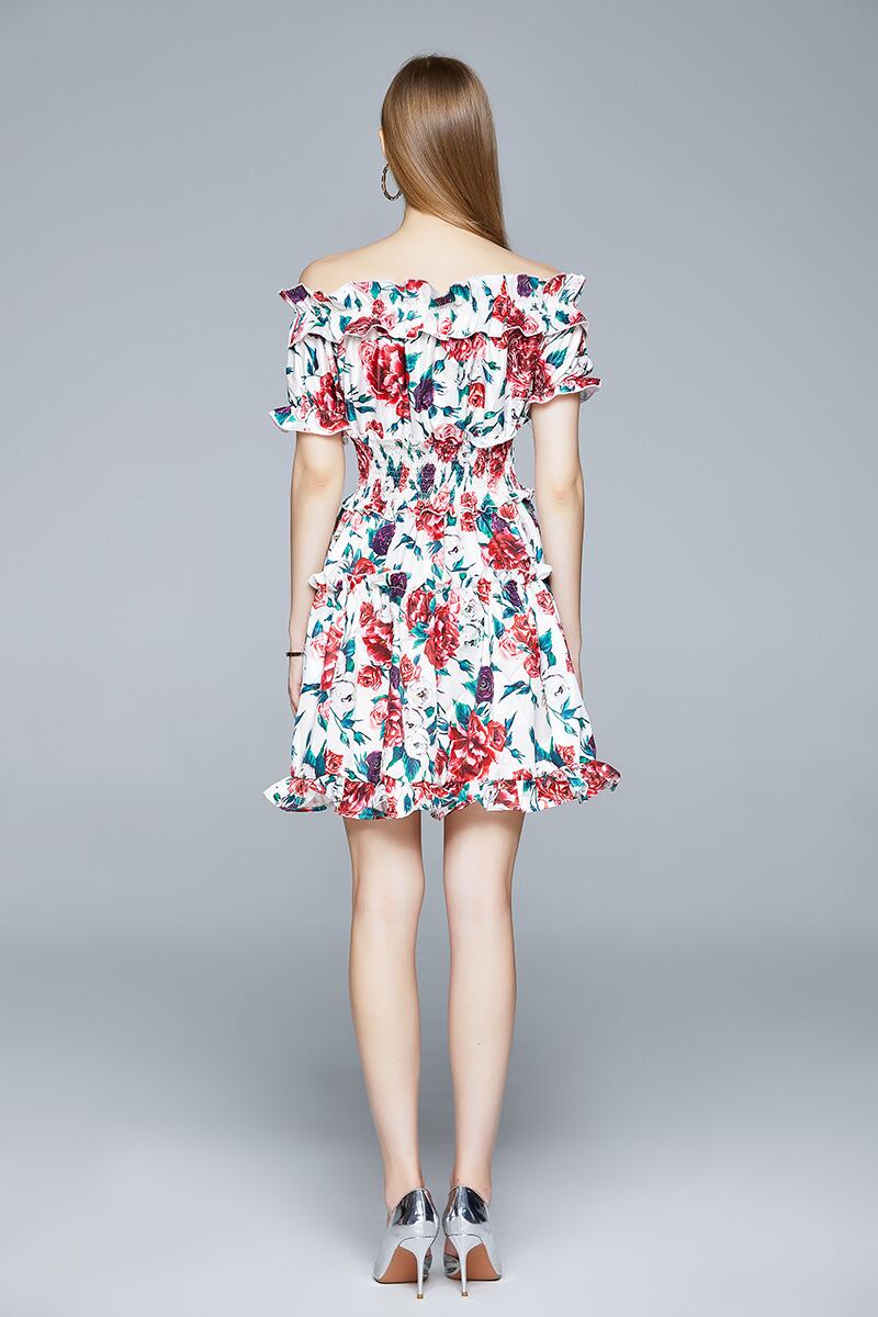 2020ランウェイウィメンズサマードレスオフショルダーエラスティックウエストフローラルプリントミニドレスショートドレス 伸縮 夏物 花柄 Rhc31963520130
