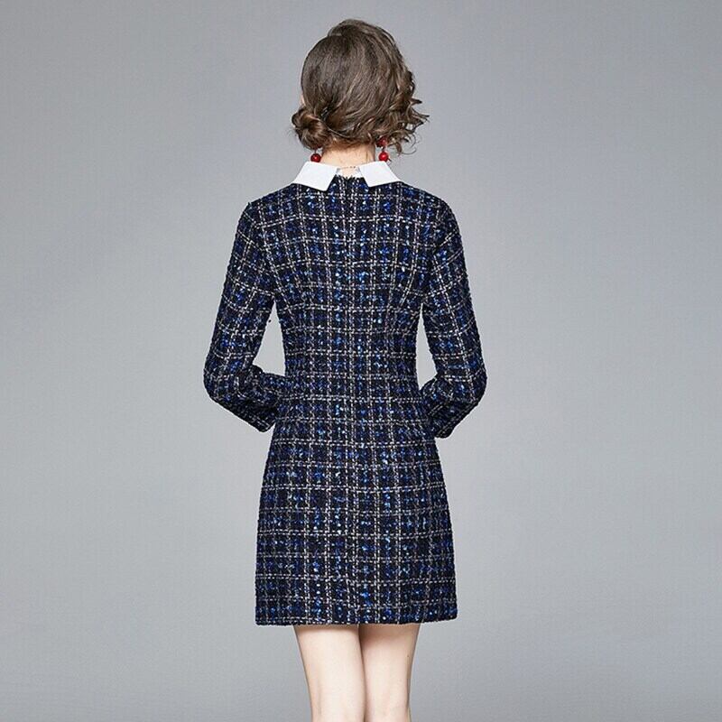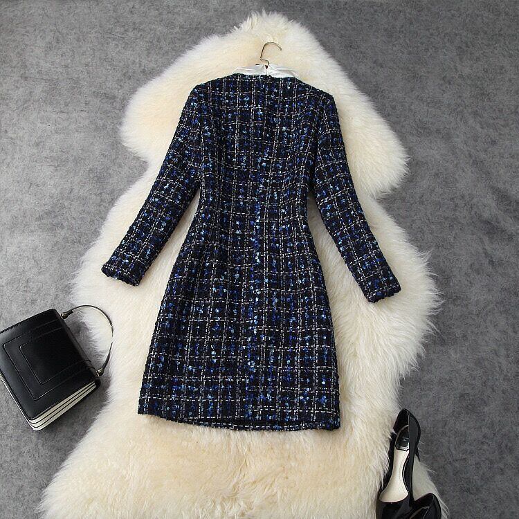 レディツイードドレスレディース秋冬2020ブリティッシュショートドレス長袖Vestidos ロング ウィンター 冬物 Rhc78070113870