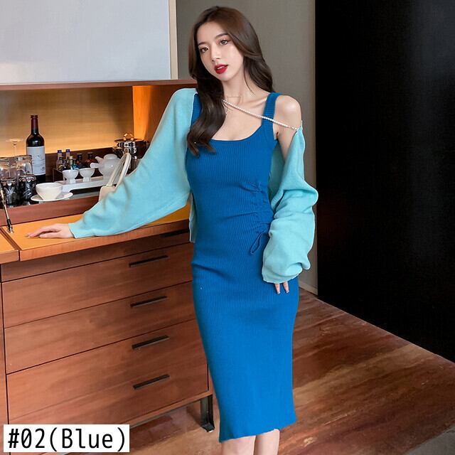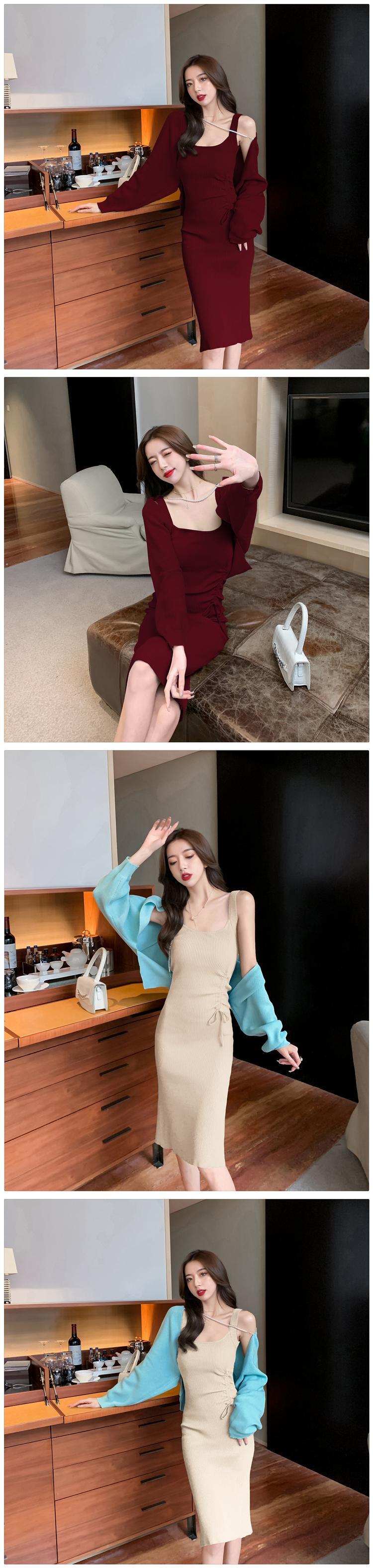 2021年夏のセクシーニットツーピースセット女性カーディガンコート+スパゲッティストラップドレスセクシースリムパーティーセット サマー 夏物 Rhc80740464514