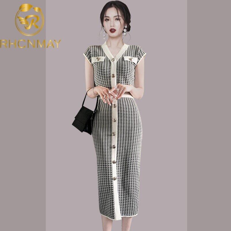 夏の女性のセクシーなシングルブレストニットVestidosボディコン鉛筆シースドレスイブニングパーティー弾性ニットドレス エラスティック 伸縮 サマー 夏物 Rhc34157845636