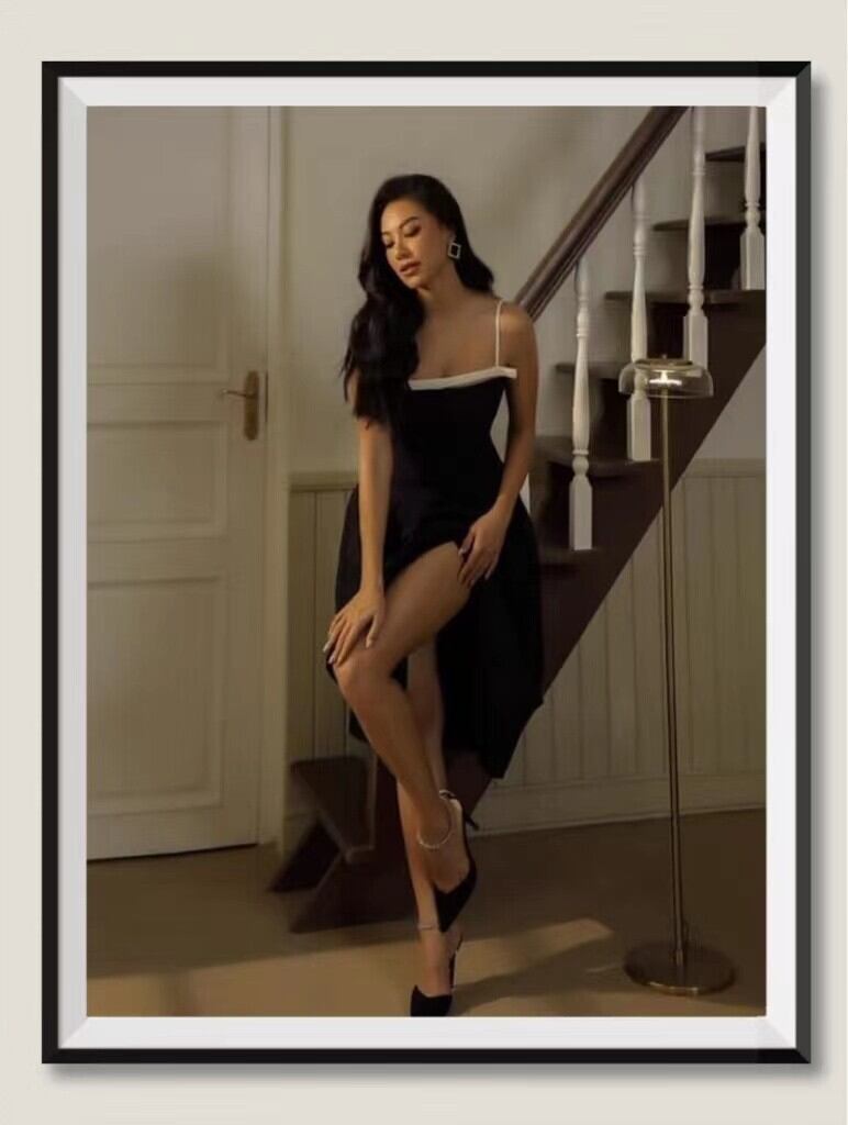 ラグジュアリークリスタルパーティーブラックAラインサマーストラップドレスレディースレディストリートシックミディエルビーズトラフ 夏物 Rhc4925906523