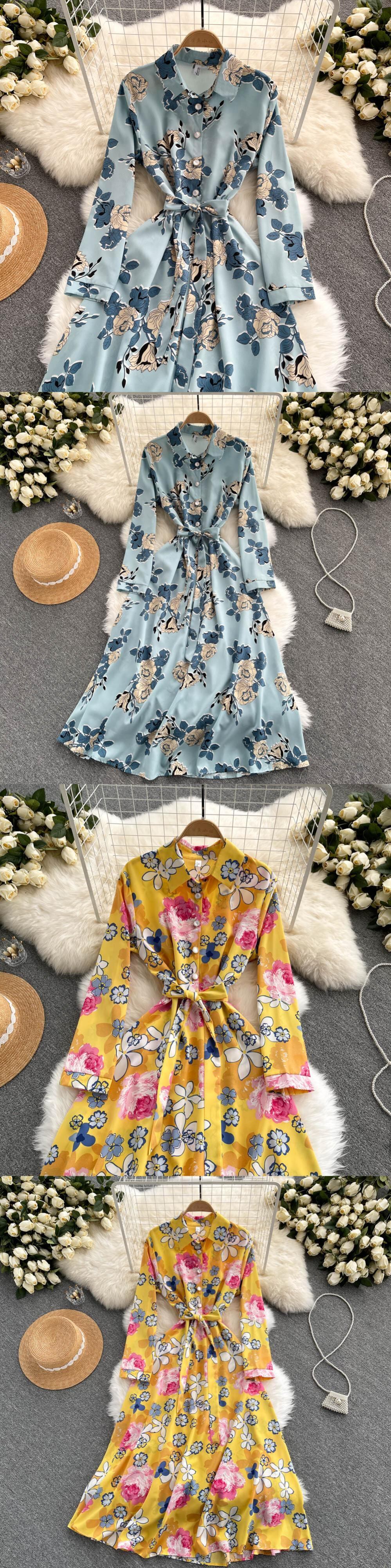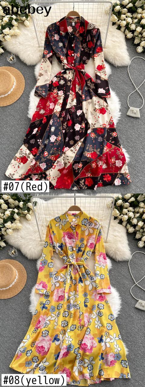 滑走路シャツドレス2022年秋の女性長袖幾何学模様事務用ベルト付きミディドレス ロング オータム 秋物 ハーネス 会社 学校 通勤や通学にも Abe4231041126