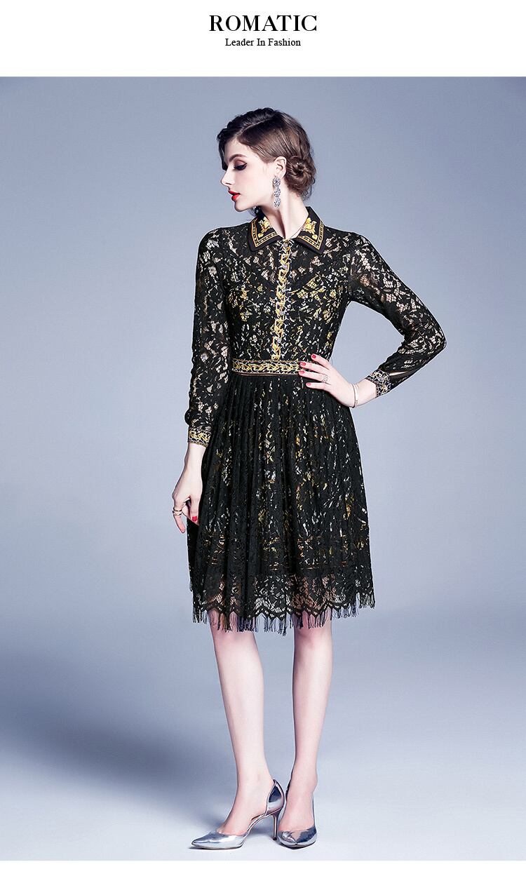2020ランウェイプリントAラインドレスレディースラグジュアリーターンダウンカラーパッチワークレースニードレス Rhc45443061332