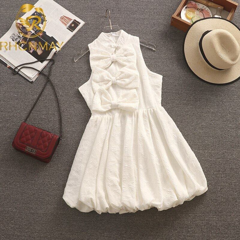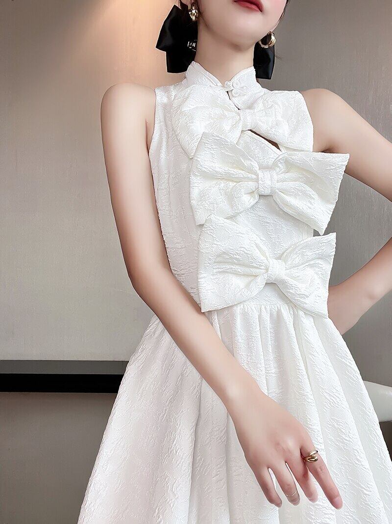 レディースドレスチャイナドレスカラーボウノースリーブウエストフレンチシルムボールガウンサマードレス リボン 夏物 Rhc546921069