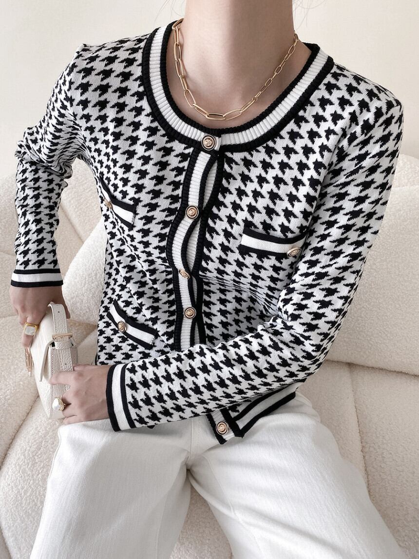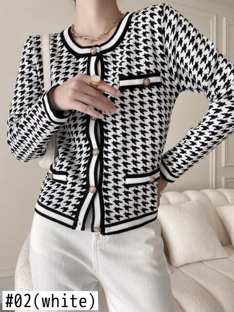 チェック柄カーディガンレディースシックなOネックシングルブレストセーター秋の気質-エンドニットカーディガン オータム 秋物 Rhc70202040508