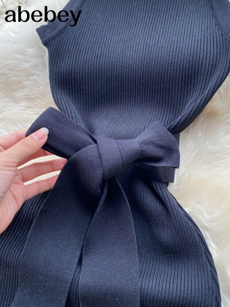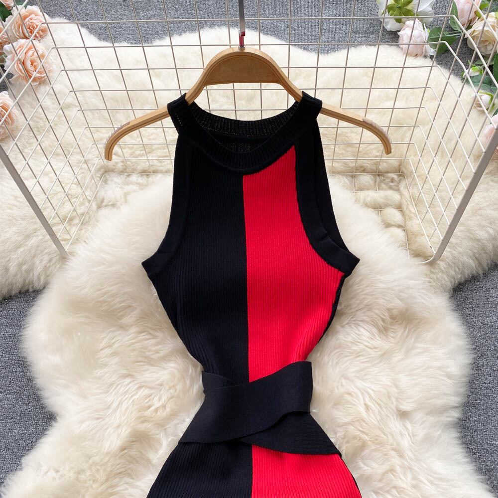 2022年夏の編み物ドレス女性Patworkボディコンドレスプルオーバーシンプルなステップマキシロングドレス サマー 夏物 Abe72589859840