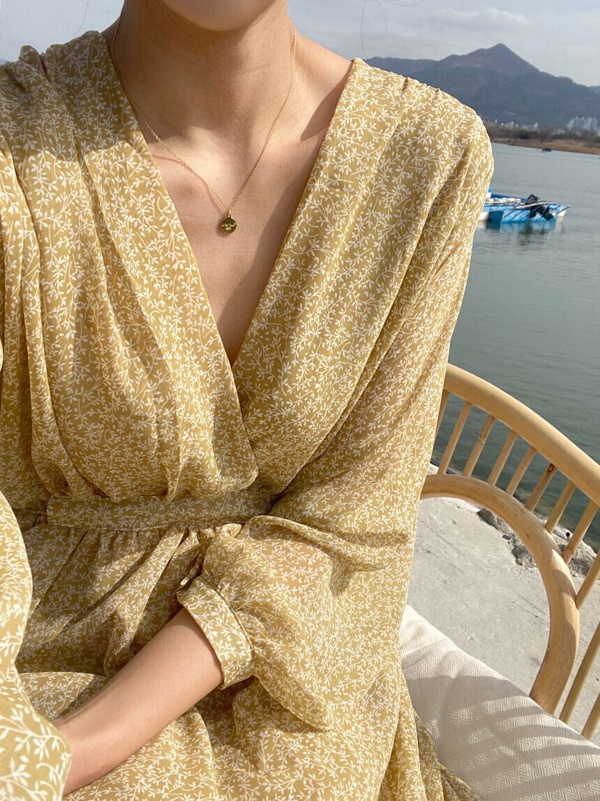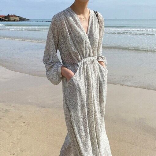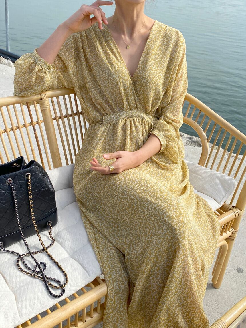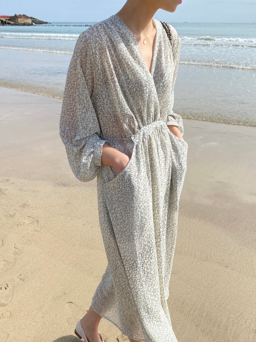 2021サマードレスレディースドレスシックなフローラルシフォンVネックドレスボヘミアンビーチドレスミディドレス 夏物 花柄 Rhc62391180157
