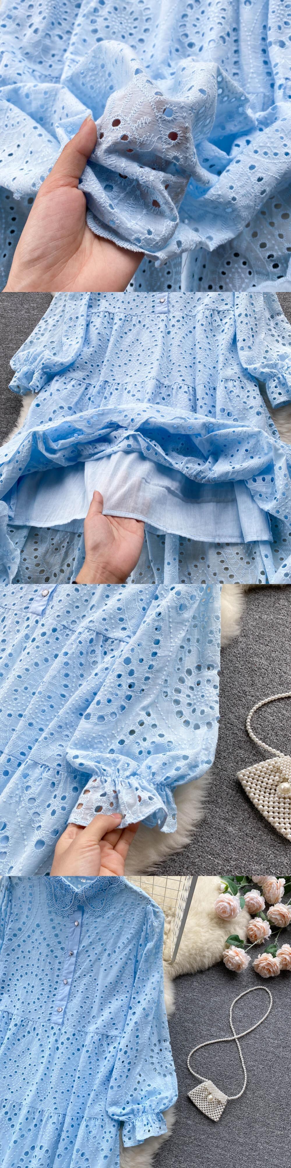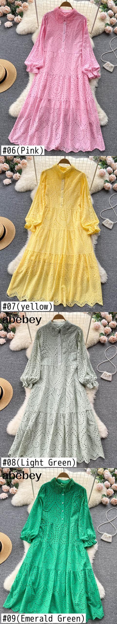 ホワイト/グリーン/ピンク2022サマーレース刺繡ドレス女性長袖ドレスパーティービーチマキシロングドレス 刺繍 夏物 Abe83689689302