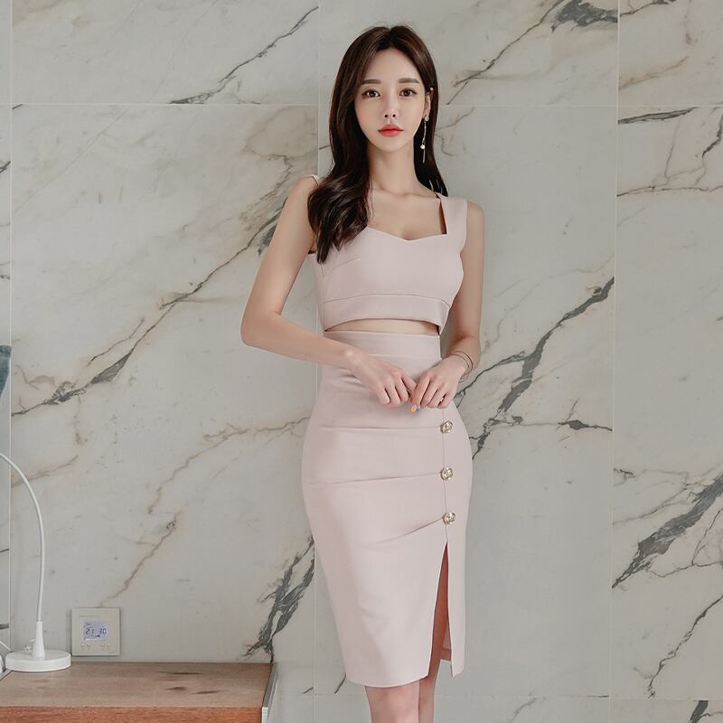 2020サマーピンクペンシルドレスホローウエストVネックスパゲッティストラップレディースドレスオフィスレディセクシーパーティー膝丈ドレス 夏物 会社 学校 通勤や通学にも Rhc91645056860