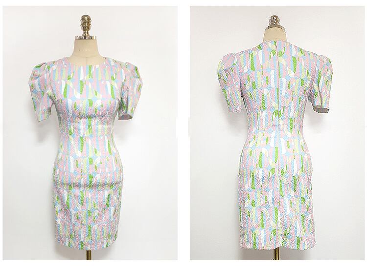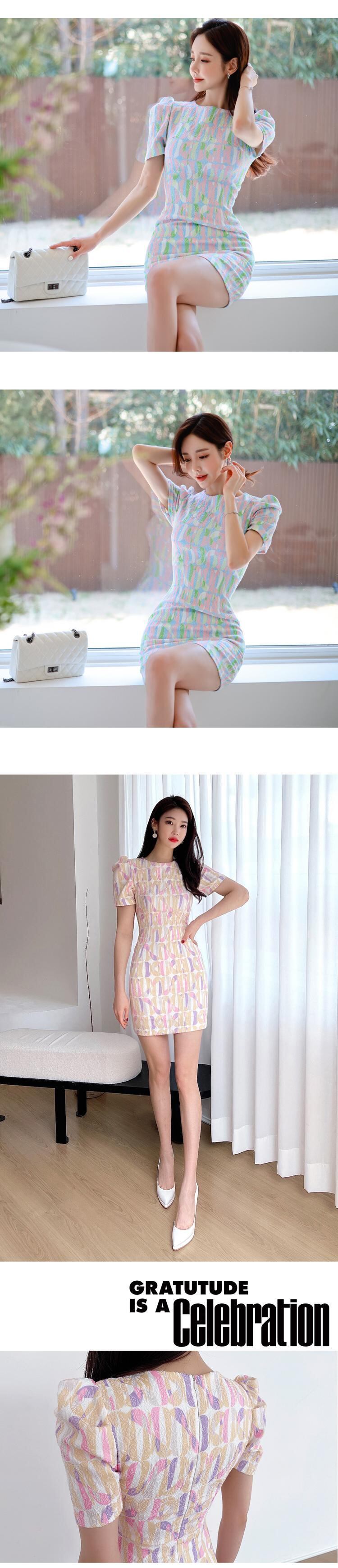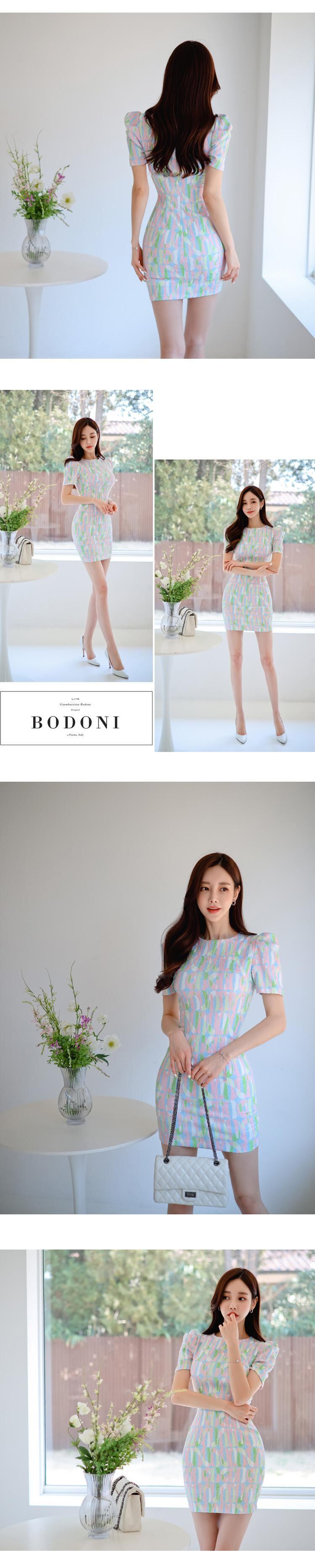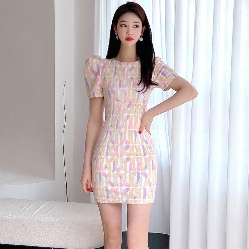 2022年夏の女性のシンプルなプリントボディコンペンシルドレススリムミニ半袖シースドレス ショート ハーフスリーブ サマー 夏物 Rhc27104575776