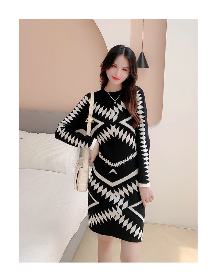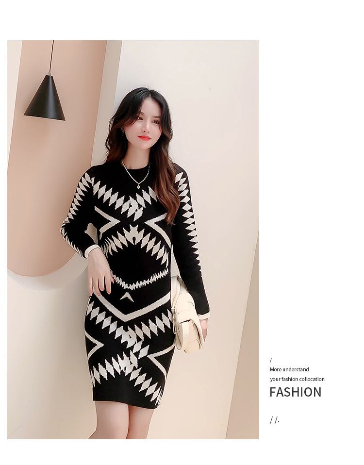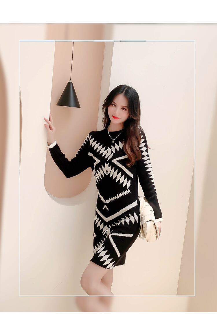 女性2021年秋冬ニットスリムタートルネック長袖セクシーボディコンセータードレスプリントベーシックドレス ロング オータム 秋物 ウィンター 冬物 Rhc77184814412