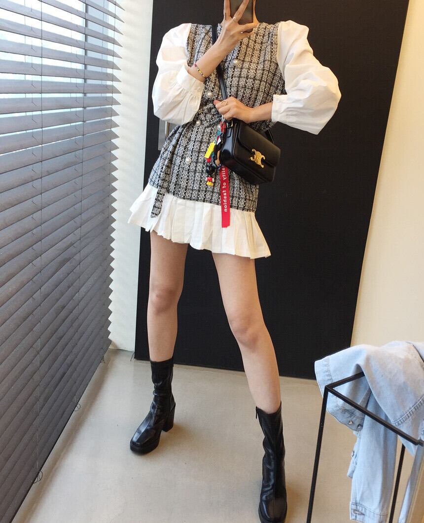 2020秋の格子縞のパッチワークの女性が小さな香りのダブルブレストサッシュをドレスアップホワイトドレスパーティーVestidos オータム 秋物 Rhc40969613649