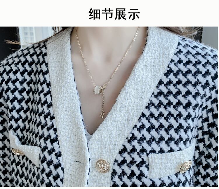 気質セットシックなVネック長袖チェック柄コート+ミニウエストスカート秋のパッチワークツイードツーピースセット ロング オータム 秋物 Rhc11570271479