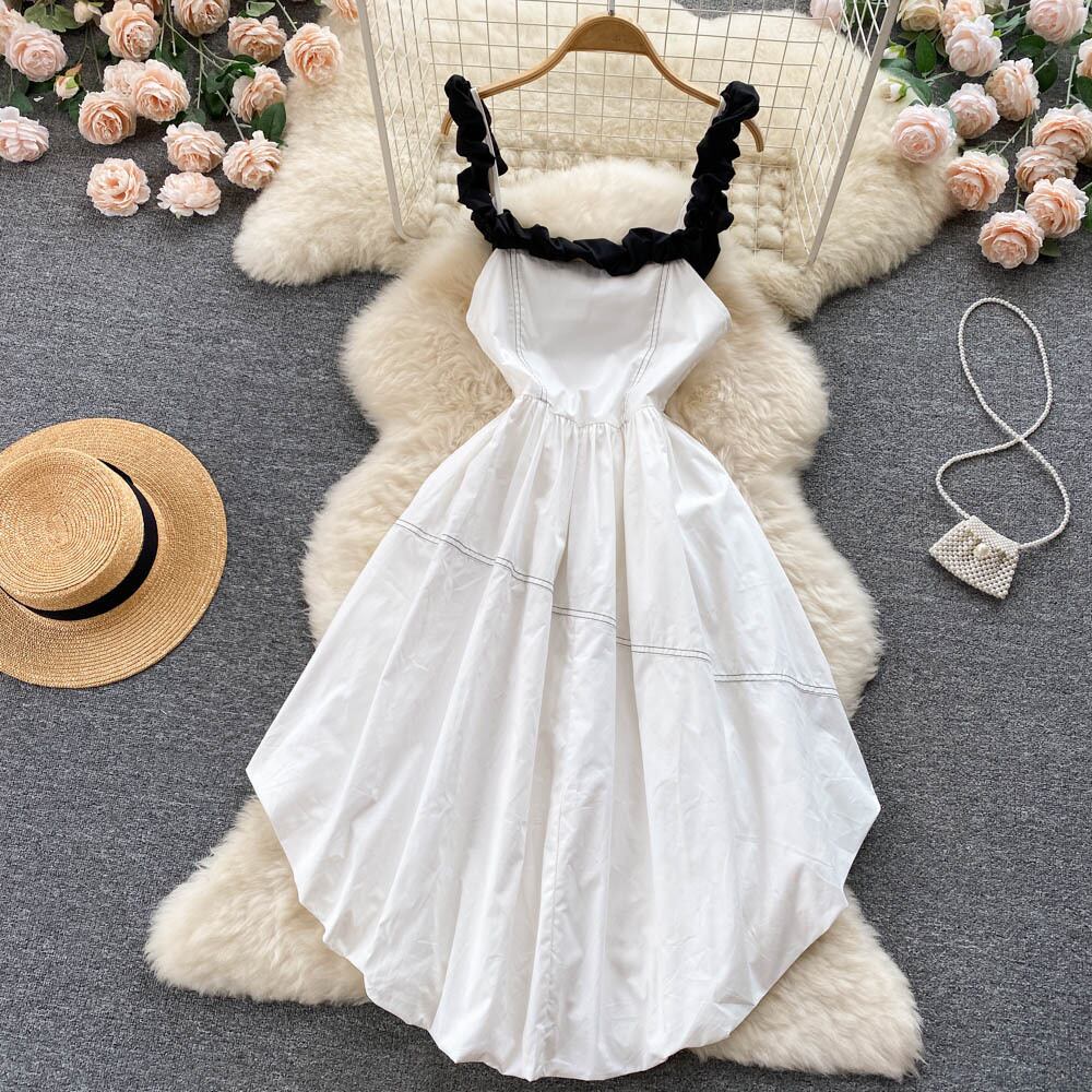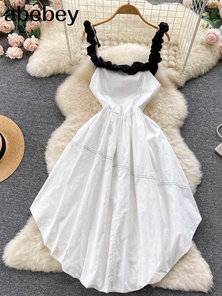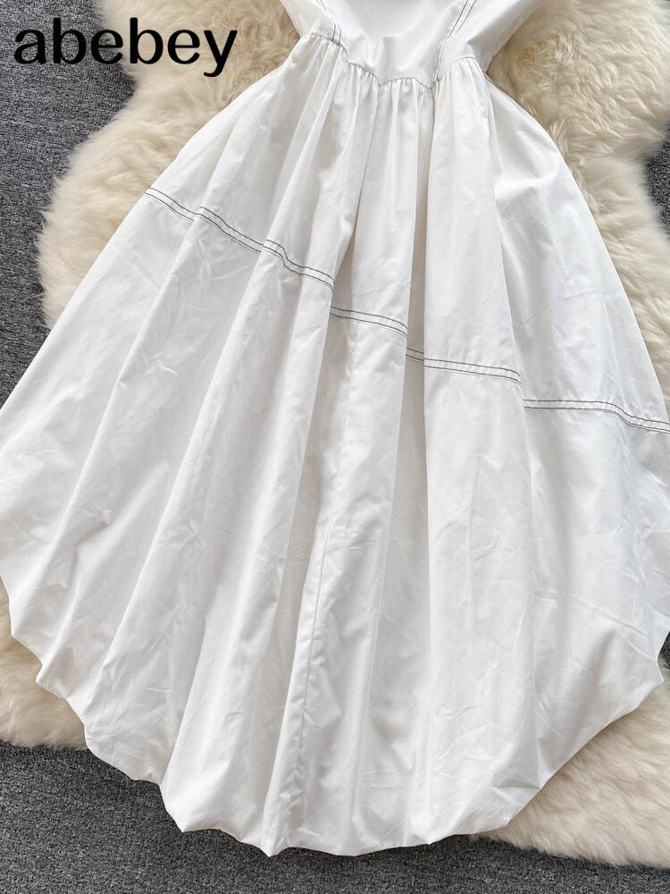 不規則な白いミディドレス女性セクシーな背中の開いたドレス夏のスパゲッティストラップパッチワークビーチノースリーブドレス ホワイト サマー 夏物 Abe72287018318