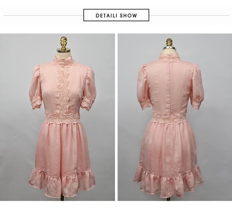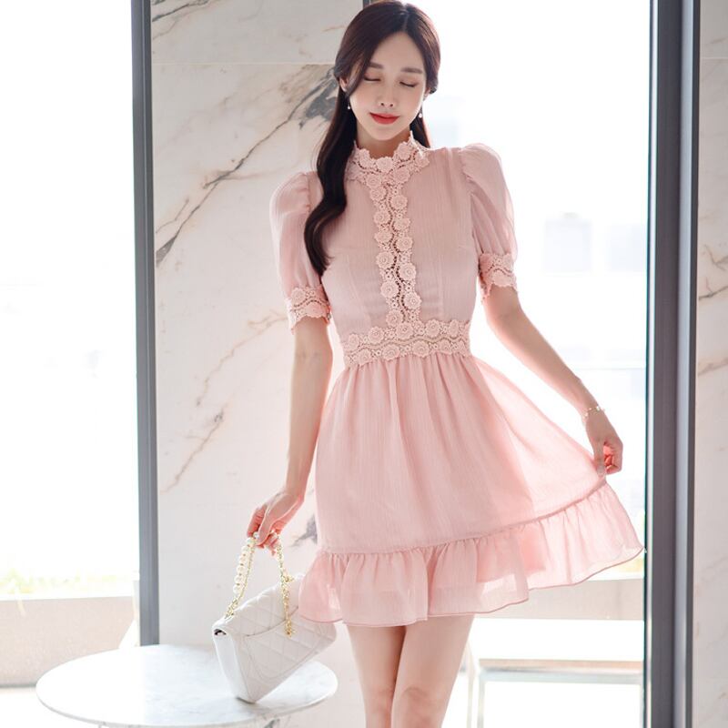 夏のピンクの甘いドレスの女性のフリルパーティーミニドレスパフスリーブスタイルの妖精のドレス2022 ラッフル 大人ガーリー スウィート キュート カジュアル サマー 夏物 Rhc39884529933