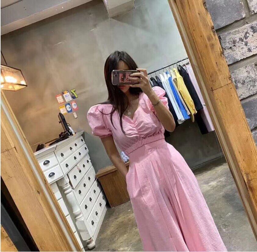 夏の女性用パフ半袖Vネックトップ+伸縮性ウエストワイドレッグパンツ無地ホワイトピンクホリデー2点セット ショート ハーフスリーブ エラスティック サマー 夏物 ワイドパンツ ソリッドカラー Rhc57058808918