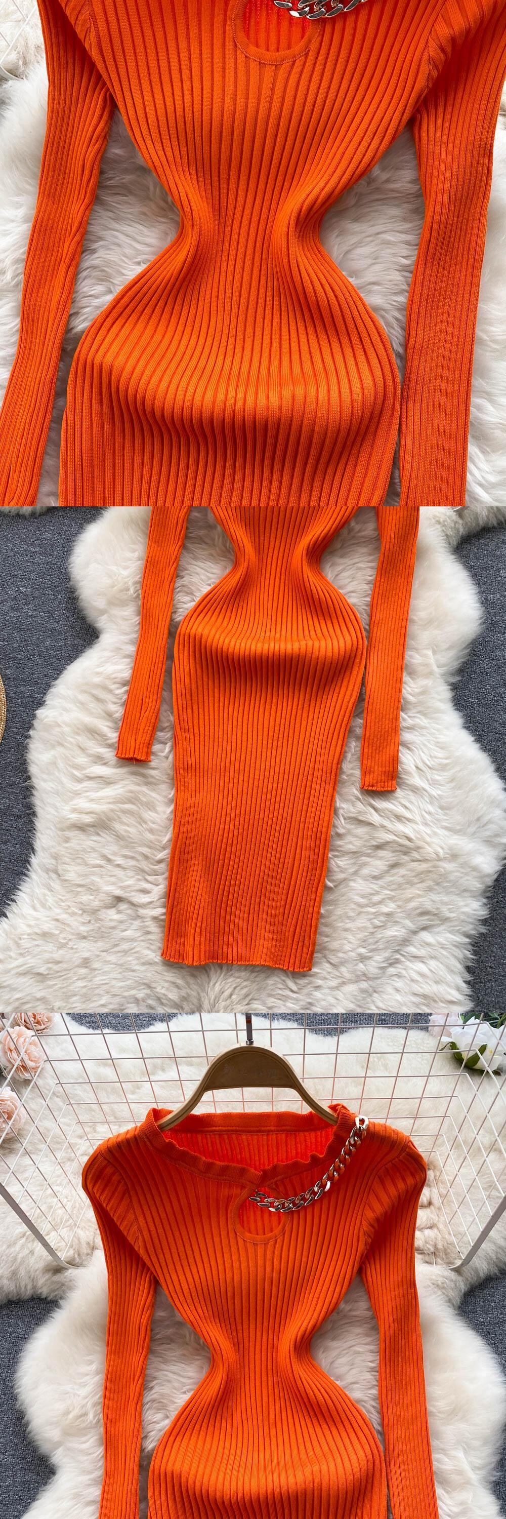 女性ニットドレス長袖Oネック伸縮性スリムペンシルドレス2022秋セクシーボディコングリーンセータードレス ロング エラスティック オータム 秋物 Abe27698875251
