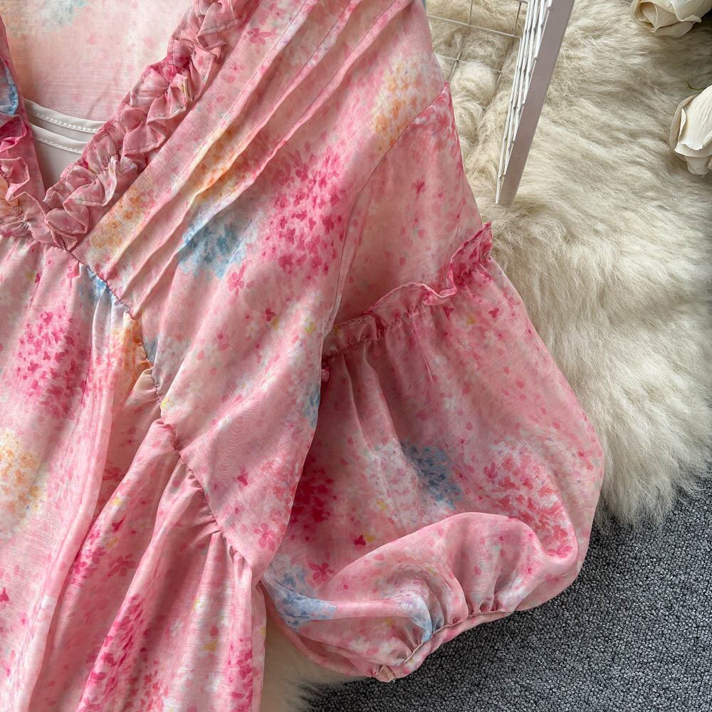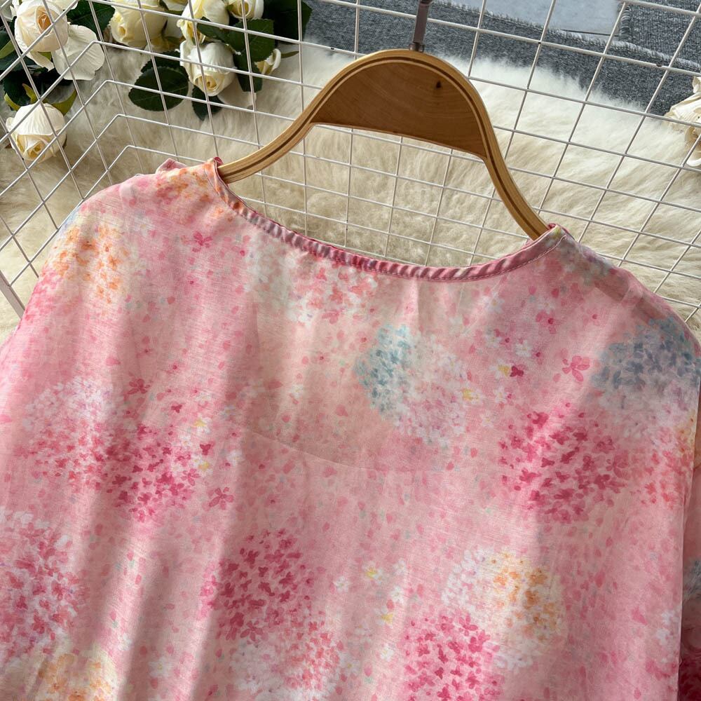 女性の自由奔放に生きるパフスリーブロングドレスサマールーズジオメトリプリントハーフスリーブドレスパーティーマキシドレスVestidos 半袖 夏物 Abe52201685203