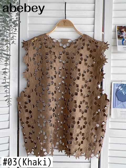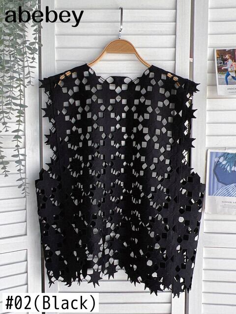 レッドレディースベスト2022レースホローアウトノースリーブOネックプルオーバートップスCausalSumemrウエストベスト Abe70952677723