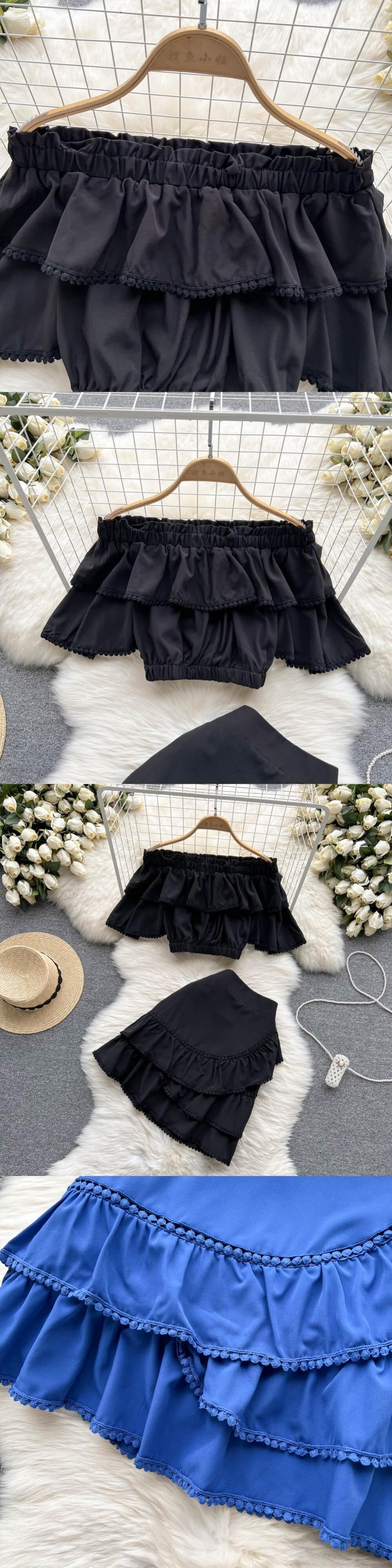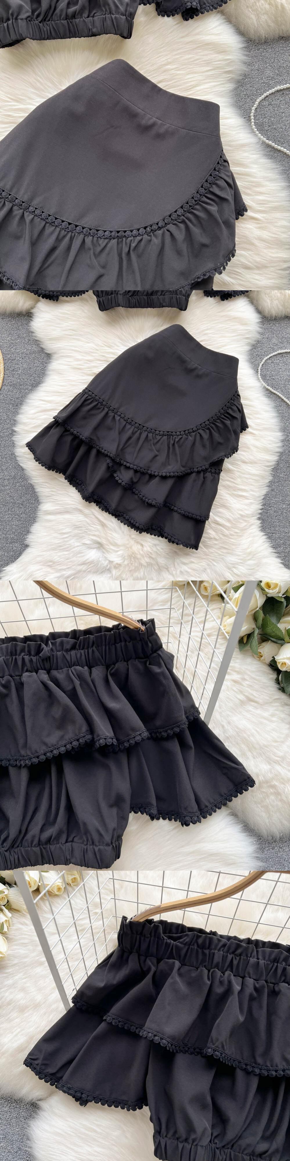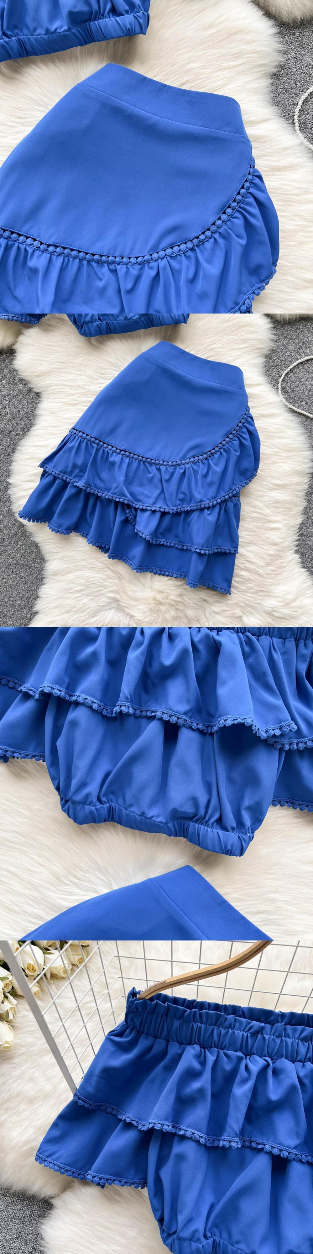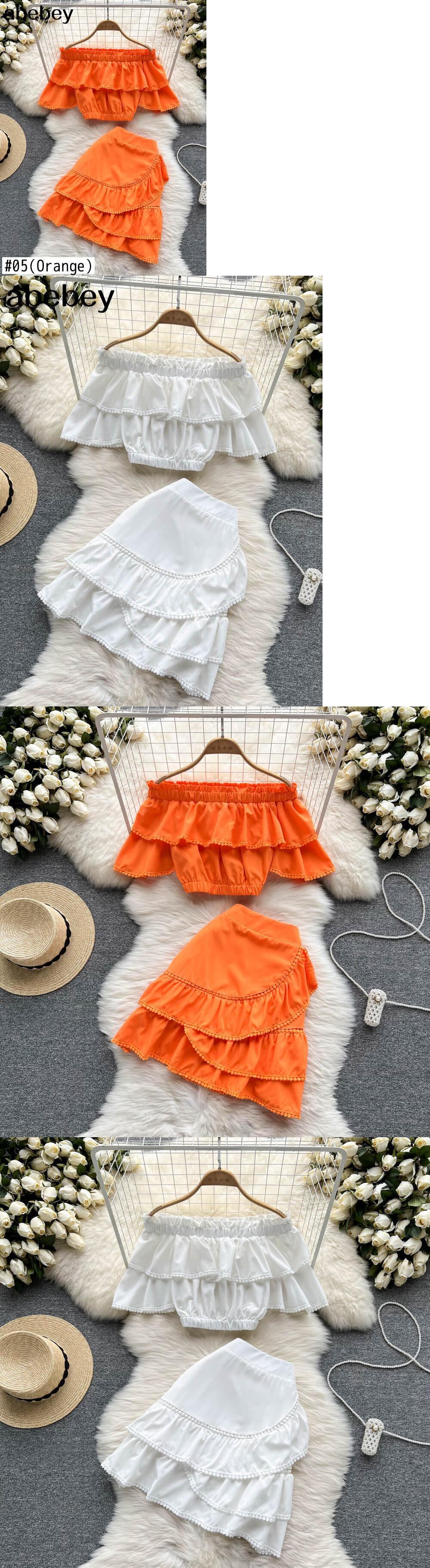 グリーン2022レディーススカートセットドレススラッシュネックトップスカート付き2ピースセットショートトップウエストスカートスーツ夏服 サマー 夏物 Abe56601153853