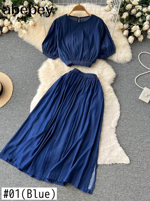 2022年春夏レディースウェア半袖OネックトップスとウエストロングスカートOLオフィスレディツーピースセット ショート ハーフスリーブ スプリング 春物 サマー 夏物 会社 学校 通勤や通学にも Abe56244799640