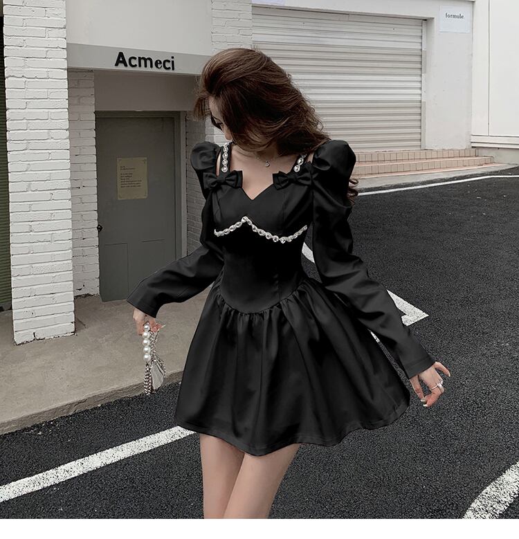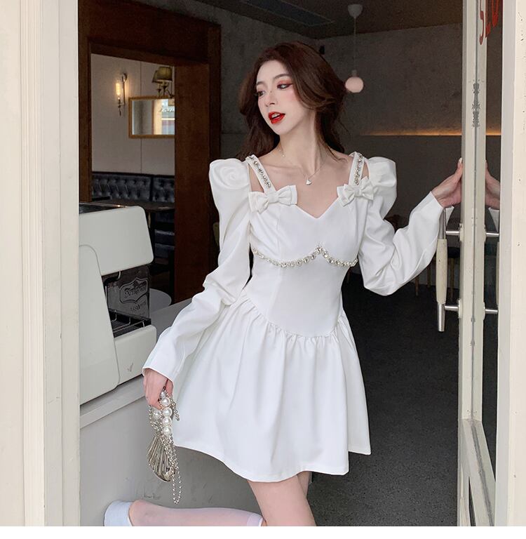夏の女性2022年秋のフレンチドレススウィートボウレース長袖ビーズパーティードレスVestidos ロング リボン 大人ガーリー キュート カジュアル サマー 夏物 Rhc83343501283