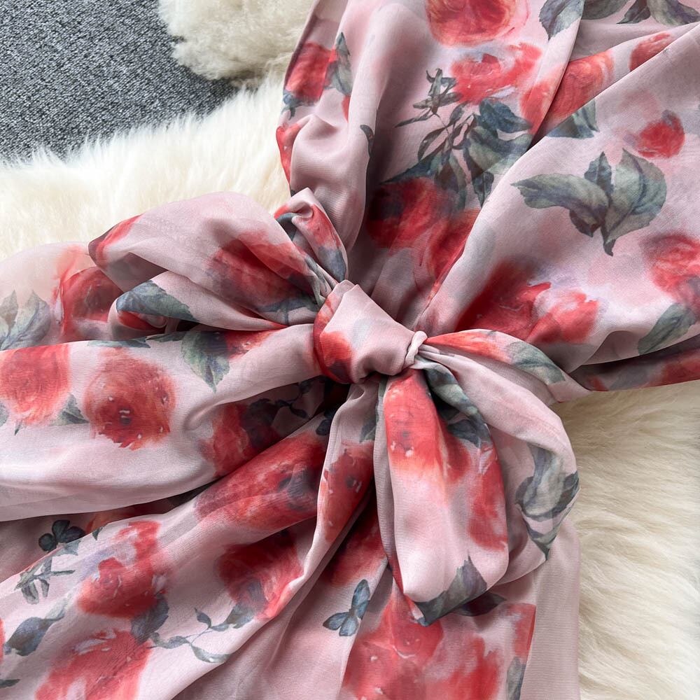 女性サマーマキシドレス2022ノースリーブ自由奔放に生きる花柄ロングドレスタートルネックバンデージパーティードレスVestidos 夏物 Abe14833881366
