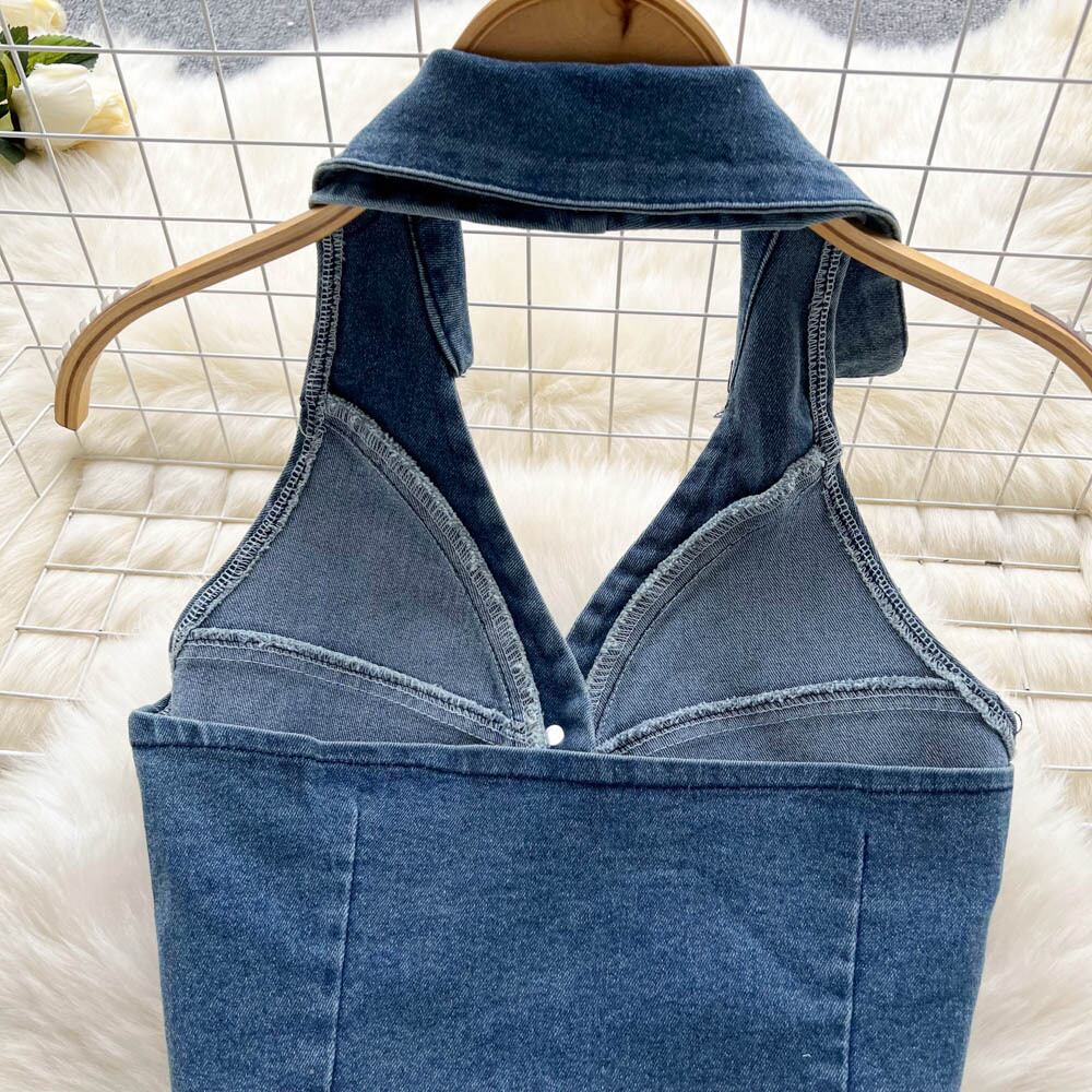 デニムツーピースセットレディーススーツクロップトップスとジーンズスカートセットストラップサッシセクシーな不規則なナイトクラブデニムの衣装 Abe9573174512