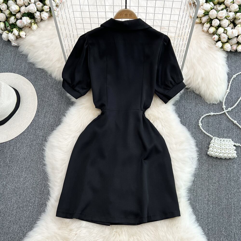 夏のショートパフスリーブブレザードレス女性の弓結び目ブリンブリン中空アウトウエストミニドレス2022 リボン サマー 夏物 Rhc834711826
