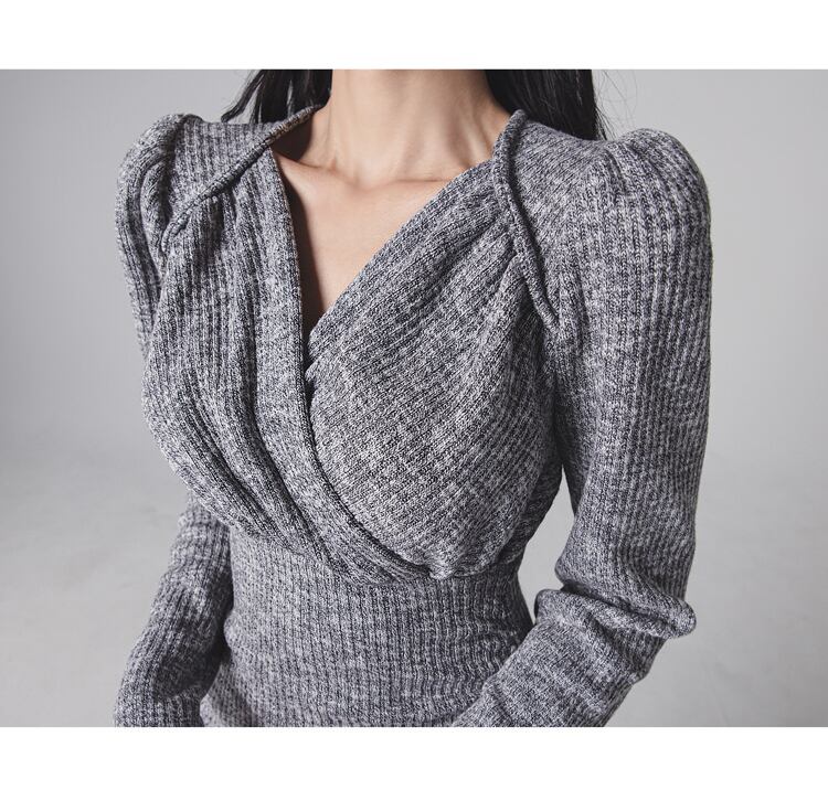 2020年女性春秋長袖セクシー気質Vネックニットセータードレススリムシックなミニニットドレス ロング スプリング 春物 オータム 秋物 Rhc33439105874
