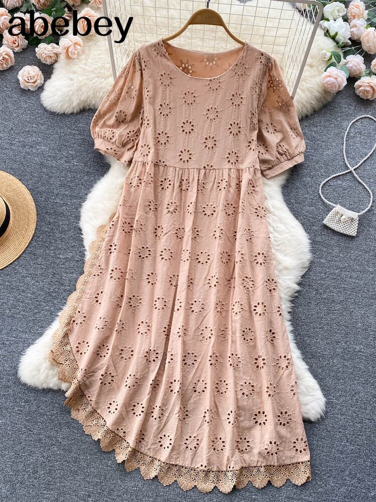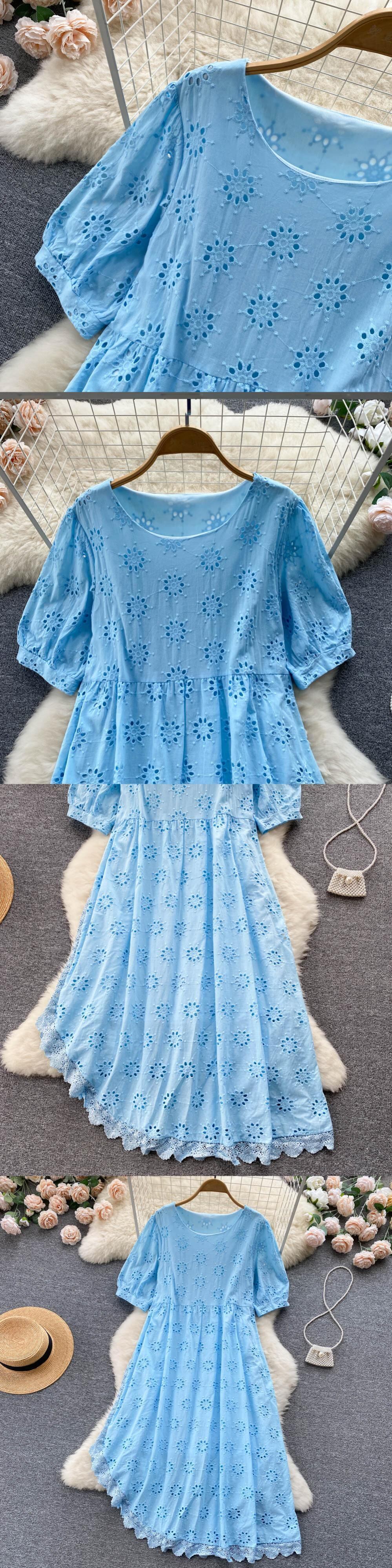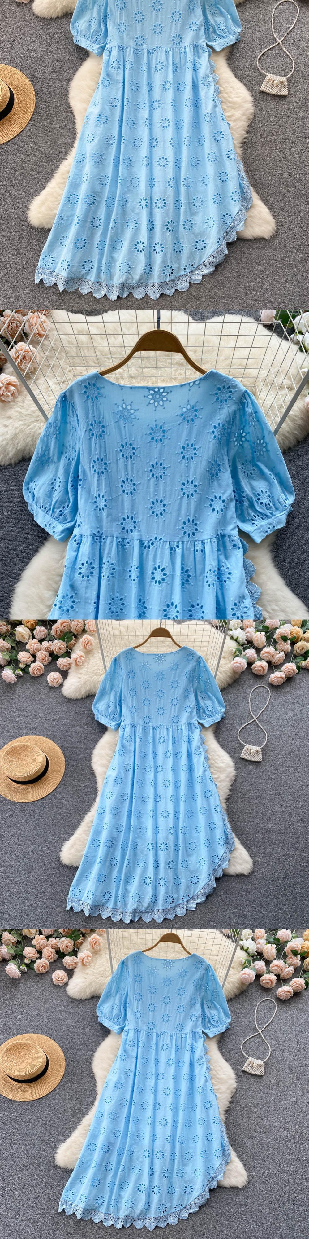 ホワイト/ブルー/ピンク2022サマーレース刺繡ドレス女性半袖ドレスパーティービーチミディロングドレス ショート ハーフスリーブ 刺繍 夏物 Abe26386296918