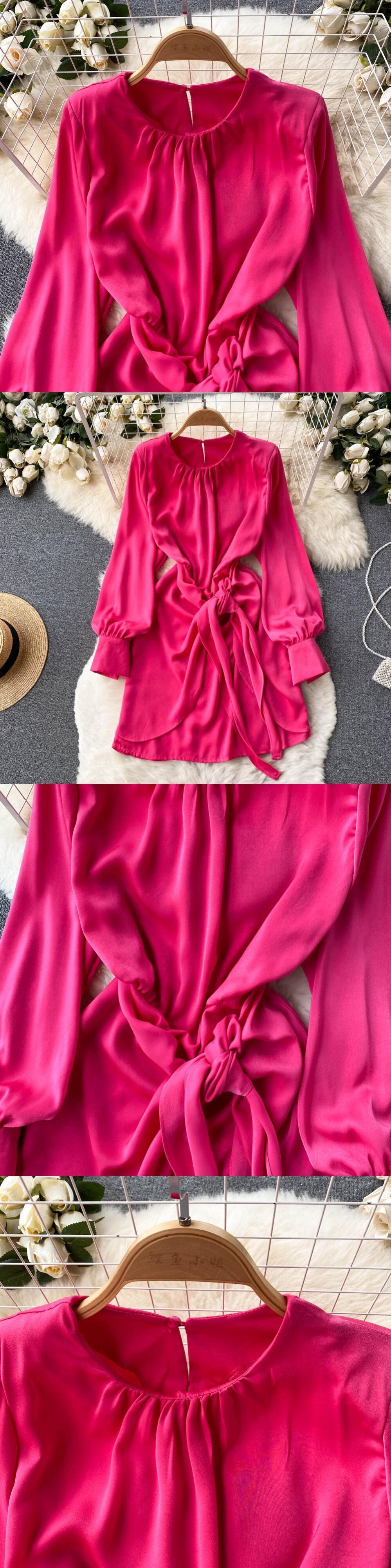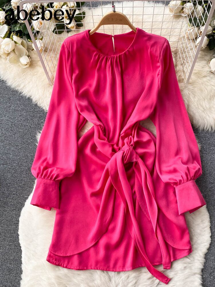 緑/青の女性のドレス2022年春夏セクシーなソリッドOネックロングランタンスリーブシャーリングドレスボディコンパーティードレス ブルー スプリング 春物 サマー 夏物 ソリッドカラー グリーン Abe46122825000