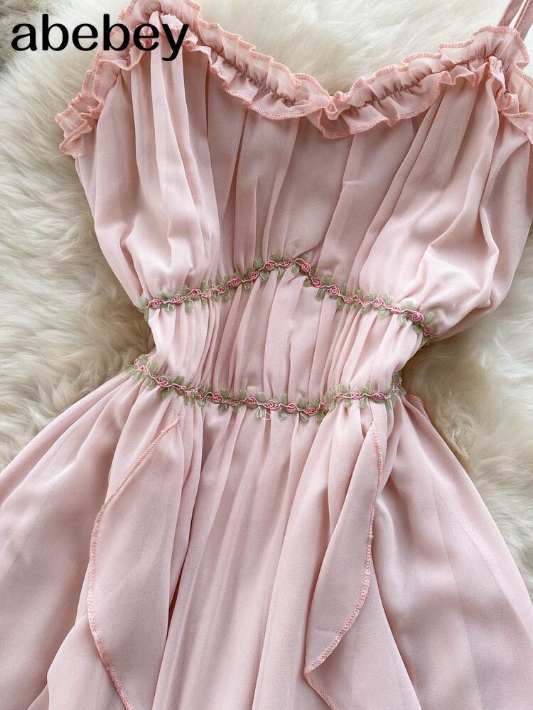ピンクのスパゲッティストラップマキシドレス女性夏ノースリーブスモック自由奔放に生きるロングビーチドレスサンドレスVestidoFeminino サマー 夏物 Abe5739331820