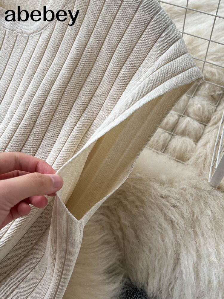 女性サマーニットセットタンクノースリーブルーズトップ+ワイドレッグロングパンツストリートウェアプリーツスーツシックなツーピースセット 夏物 ワイドパンツ Abe81707206612