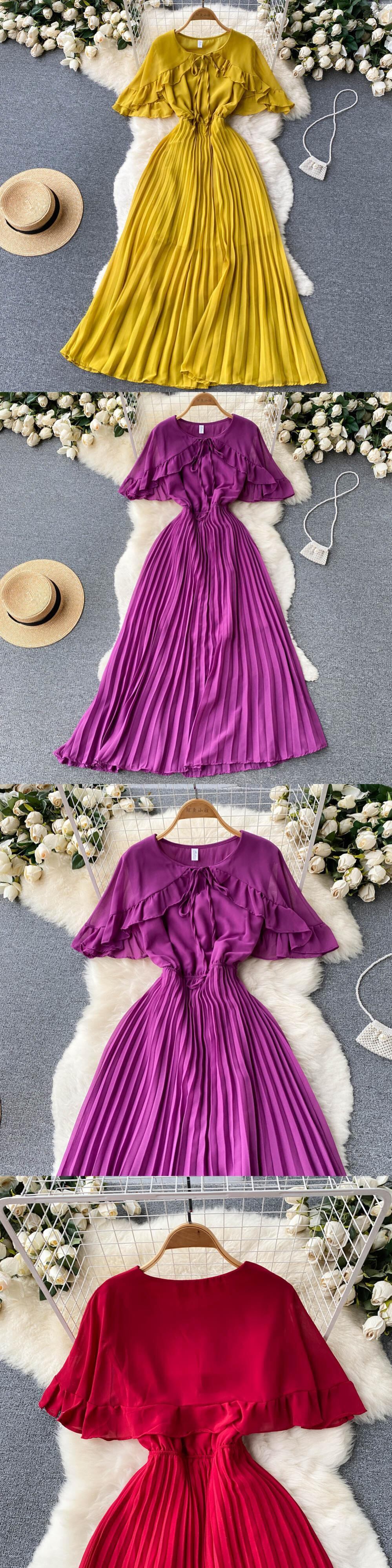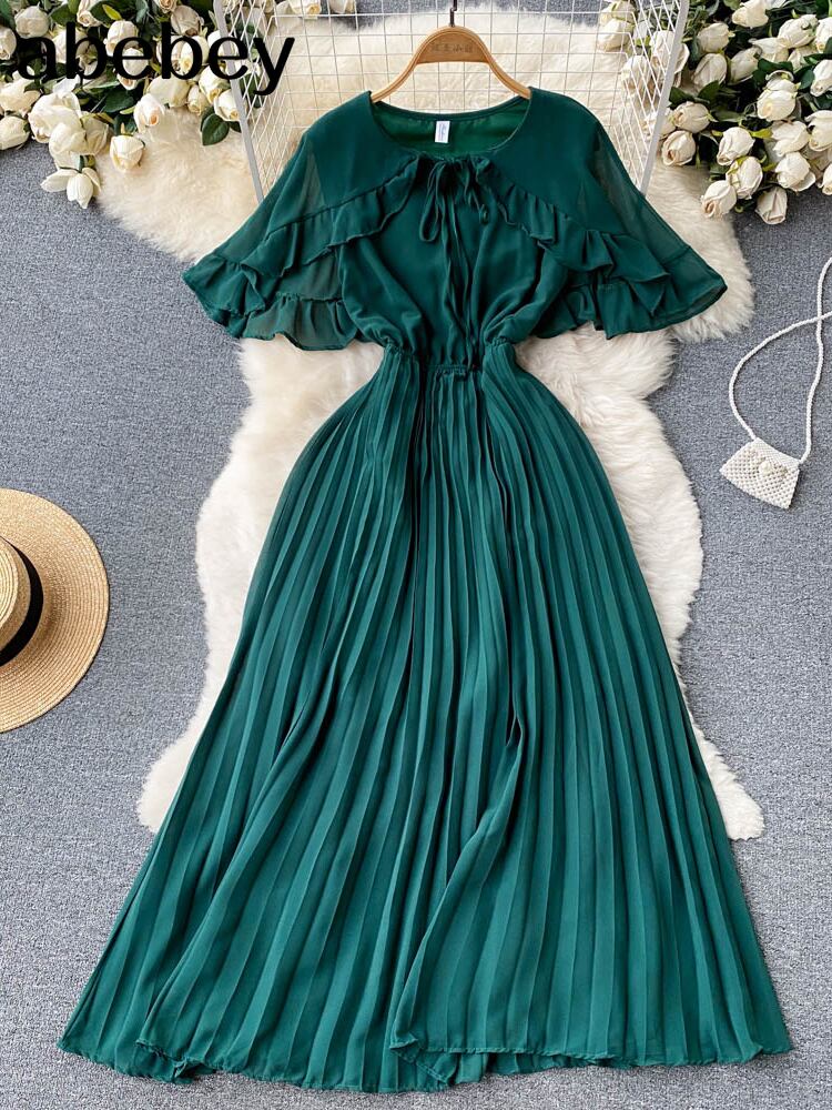 グリーン/レッド/ピンクマキシソリッドサマードレスレディーススリムフリルボヘミアンレディースビーチドレスVestidos ラッフル 夏物 ソリッドカラー Abe76104914465